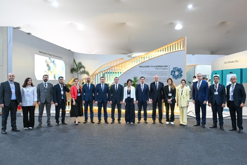 Pavilyonun mərkəzində isə Azərbaycanın aparıcı milli layihələri – Qarabağ yaşıl enerji zonası (YEZ), Bakı Yaşıl Nəqliyyat Mərkəzi (YNM), vüsət alan bərpaolunan enerji portfeli və Aİ-Asiya yaşıl enerji dəhlizi layihəsi təqdim olunur. Bu təşəbbüslər Azərbaycanın gələcəkdə qitələri birləşdirən təmiz enerji mərkəzinə çevrilməsində oynadığı strateji rolu göstərir.
