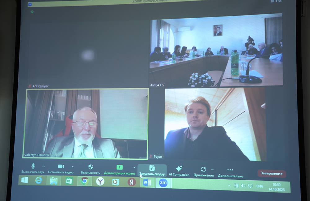 Sonra onlayın formatda Belarus Milli Elmlər Akademiyasının Fəlsəfə İnstitutunun direktoru f.ü.f.d., dos. Anatoli Lazaroviç “Müasir şəraitdə Belarusun suverenitetinin təmin edilməsi”, Qazaxıstan MEA-nın fəxri akademiki, Qazaxıstanın Əməkdar elm xadimi, h.e.d. Esberqen Alauxanov “Qazaxıstan Konstitusiyası 30 ildə: Stabillik, islahat, gələcək”, “Ukrayna Azərbaycanlıları Alimlər Şurası” İctimai Təşkilatının sədri professor Arif Quliyev “Hərtərəfli təhsil əsl siyasi liderliyin şərti kimi”, Kiyev Əqli Mülkiyyət və Hüquq Milli Universitetinin professoru Halunko Valentin “Hərbi vəziyyət şəraitində vətəndaşların konstitusiya hüquqlarına hörmət prinsipləri: Ukrayna təcrübəsi”, Avropa Tədqiqatlar İnstitutunun elmi işçisi h.e.d. Rayko Petroviç “Fırtınalı dünya dənizində kiçik bir qayıq: Serbiyanın müasir beynəlxalq münasibətlərdə suverenliyinin saxlanılması uğrunda mübarizəsi” mövzusunda məruzələrlə çıxış ediblər.
