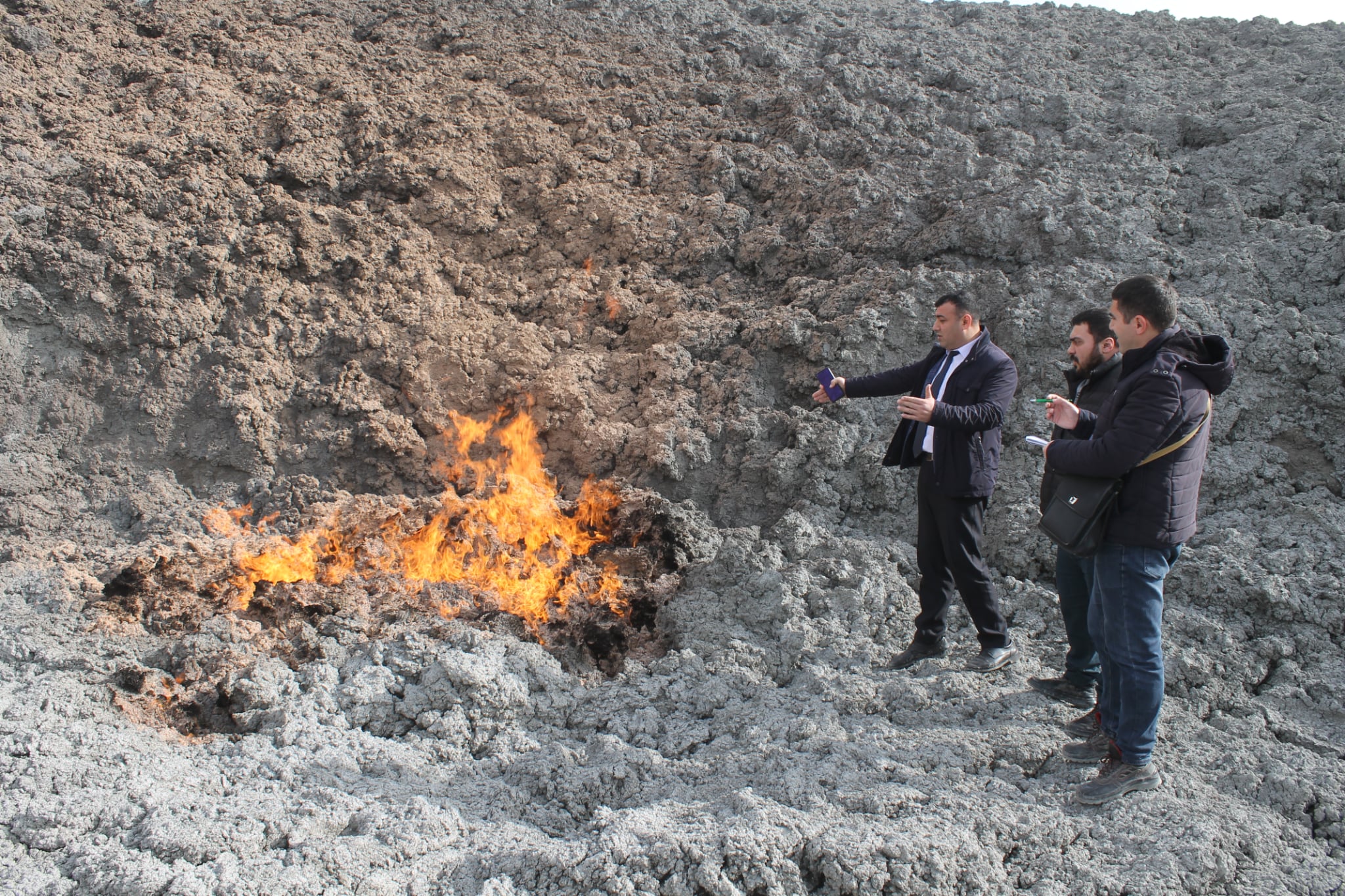 XQ xəbər verir ki, təxminən 15 dəqiqə davam edən aktiv faza zamanı yüzlərlə metr hündürlüyə qalxan alov sütunu müşahidə olunub, yer səthinə böyük həcmdə palçıq breksiyası xaric edilib.