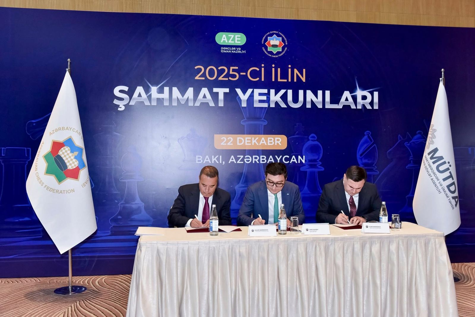 Gənclər və İdman Nazirliyi, Azərbaycan Şahmat Federasiyası və Respublika Şahmat Mərkəzi arasında Mərkəzdən birgə istifadəni nəzərdə tutan əməkdaşlıq müqaviləsi imzalanıb. Sənədi gənclər və idman naziri Fərid Qayıbov, AŞF-nin prezidenti Mahir Məmmədov və Respublika Şahmat Mərkəzinin direktoru Elşən Məmmədov imzalayıblar. Eyni zamanda, Azərbaycan Şahmat Federasiyası ilə Məktəbəqədər və Ümumi Təhsil üzrə Dövlət Agentliyi arasında niyyət protokolu təsdiqlənib. Protokola AŞF prezidenti Mahir Məmmədov və Agentliyin direktoru Eşqi Bağırov imza atıblar.