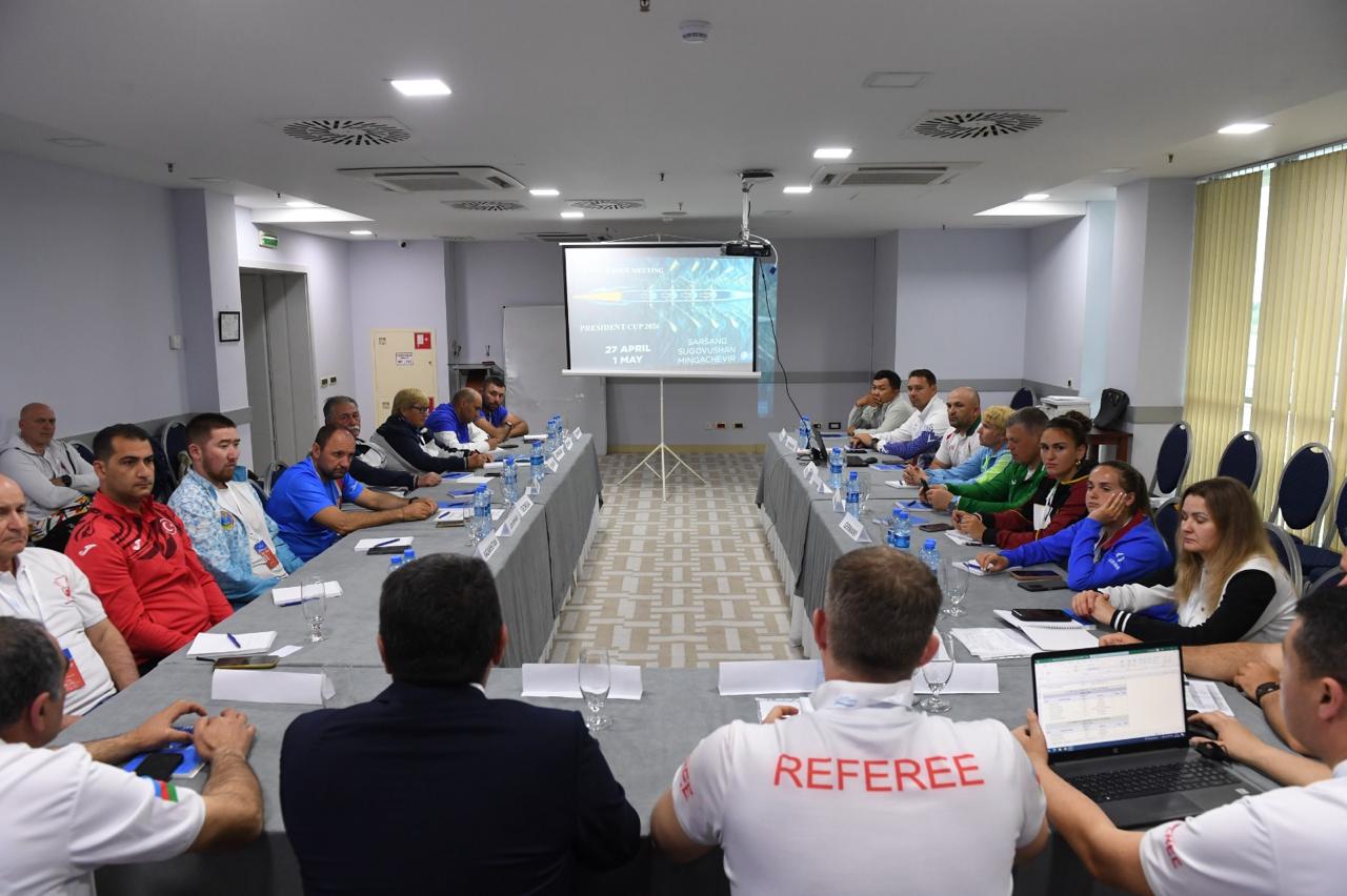 Mərasimdə Azərbaycan Su İdman Növləri Federasiyasının rəsmiləri, hakimlər kollegiyası, komanda nümayəndələri və məşqçilər iştirak ediblər. Püşkatma zamanı komandaların çıxış ardıcıllığı, idmançıların mübarizə aparacağı cütlüklər və məsafələr müəyyənləşdirilib.