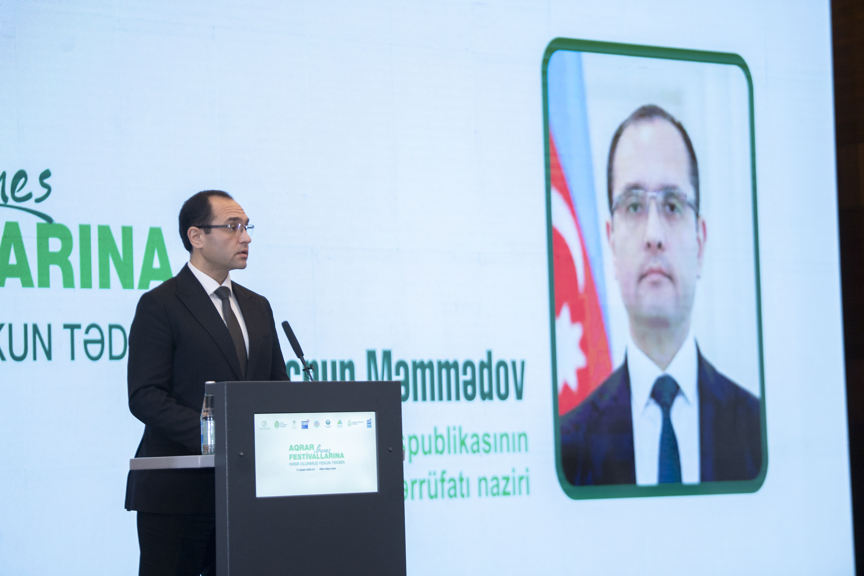Tədbirdə açılış nitqi ilə çıxış edən kənd təsərrüfatı naziri Məcnun Məmmədov bildirib ki, Azərbaycan Respublikasının Prezidenti cənab İlham Əliyevin rəhbərliyi ilə həyata keçirilən sosial-iqtisadi inkişaf strategiyasında kənd təsərrüfatı prioritet və strateji sahələrdən biri kimi müəyyən edilib: “Son illərdə kənd təsərrüfatında istehsalın səmərəliliyinin artırılması, müasir texnologiyaların tətbiqi, fermerlərin maliyyə və texniki resurslara çıxışının asanlaşdırılması istiqamətində mühüm addımlar atılıb. Rəqəmsal həllərin tətbiqi, elektron kənd təsərrüfatı platformasının genişləndirilməsi, ekoloji cəhətdən dayanıqlı istehsal modellərinə keçid dövlət siyasətinin əsas istiqamətlərindəndir. İqlim dəyişikliklərinin təsirlərinin azaldılması, torpaq və su ehtiyatlarından səmərəli istifadə, eləcə də dəqiq kənd təsərrüfatının tətbiqi aqrar sektorun rəqabətqabiliyyətliliyini daha da artırır. Məhz bu strateji hədəflərin regionlarda təşviqi məqsədilə Aqrar Biznes Festivalları təşkil olunub. Cari ildə ölkənin 13 iqtisadi rayonunu əhatə edən 28 rayonda 32 festival keçirilib, 8 milyon manatdan artıq satış icra olunub. Festivallar çərçivəsində toxum sərgi-satış yarmarkaları, kredit yarmarkaları, panel müzakirələr və təlimlər təşkil edilib”.