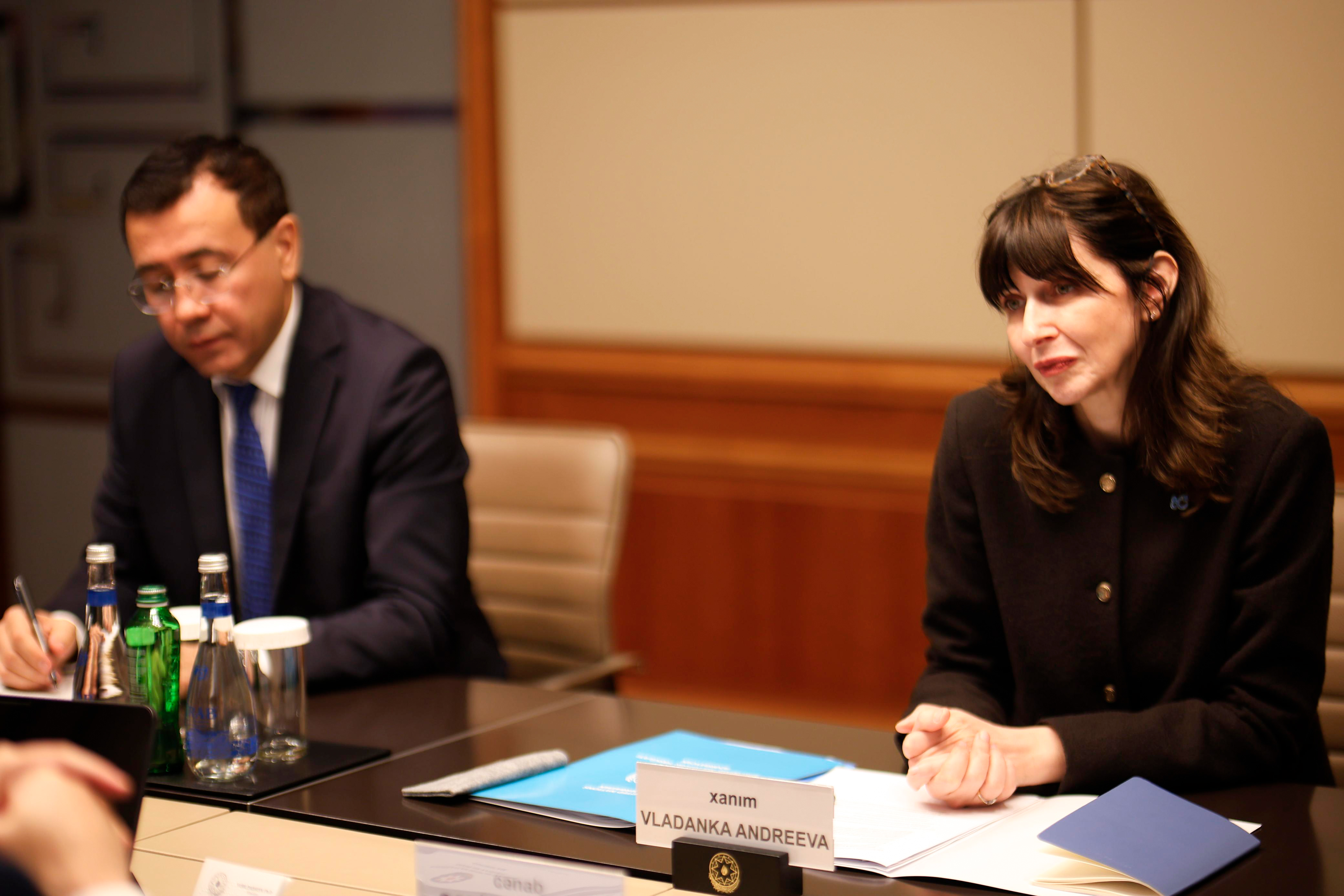 Nazir Sahil Babayev Azərbaycanın milli inkişaf gündəliyinin və dayanıqlı inkişaf məqsədlərinin həyata keçirilməsində BMT-nin müxtəlif ixtisaslaşmış qurumları ilə formalaşmış çoxşaxəli tərəfdaşlığının əhəmiyyətli rol oynadığını vurğulayıb, həmçinin bu tərəfdaşlığın daha da genişləndirilməsi və təşəbbüslərin səmərəli icrası istiqamətində Azərbaycanın mövcud prioritetlərini qarşı tərəfin diqqətinə çatdırıb.