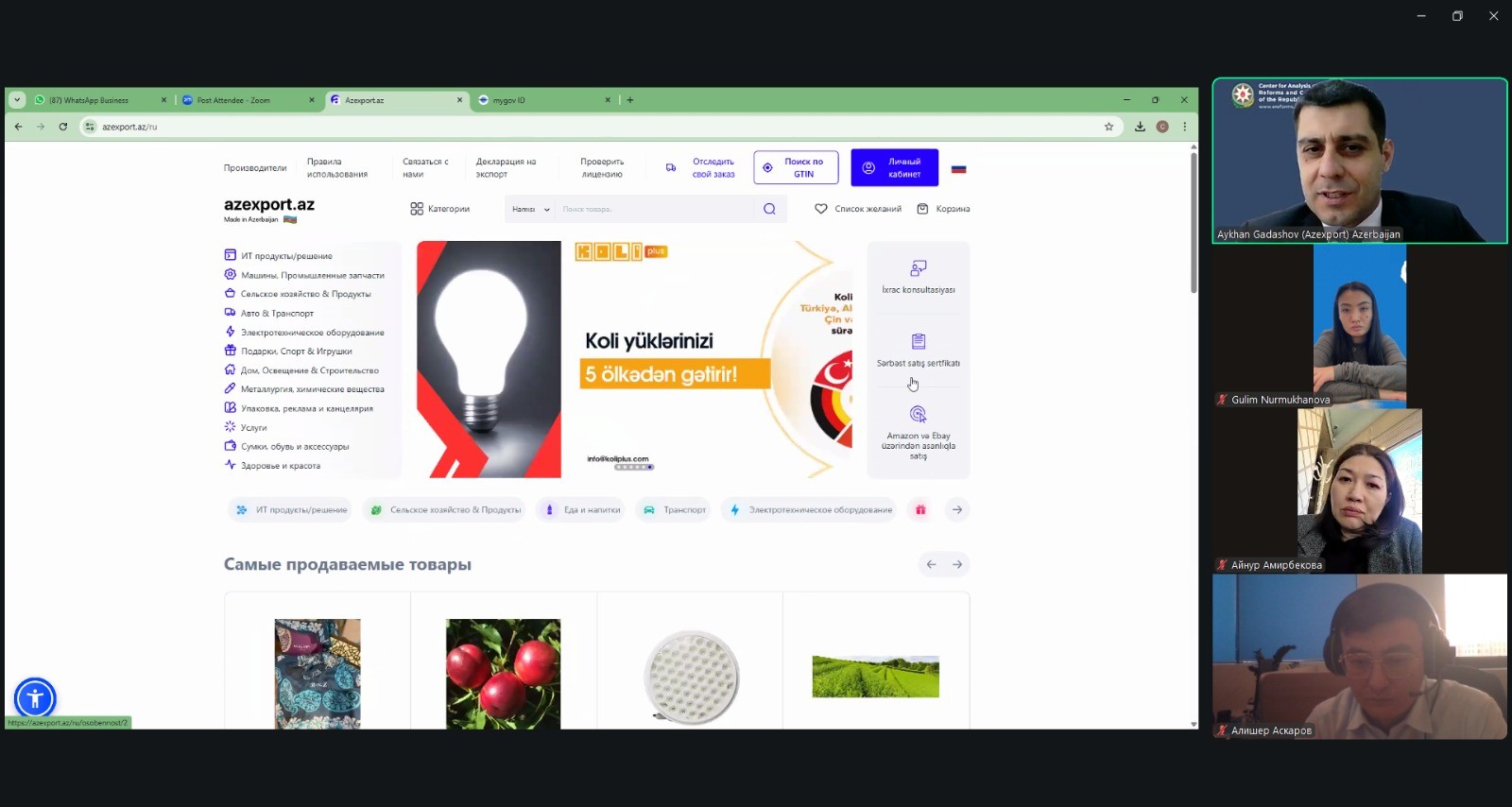 İqtisadi İslahatların Təhlili və Kommunikasiya Mərkəzinin (İİTKM) operatoru olduğu “Azexport.az” portalı ilə Qazaxıstanın Ticarət və İnteqrasiya Nazirliyinin “QazTrade” Ticarət Siyasətinin İnkişafı Mərkəzi arasında işçi görüş keçirilib. Görüşün əsas məqsədi Azərbaycanın elektron ixrac sahəsindəki uğurlu modelinin öyrənilməsi və bu təcrübənin Qazaxıstanda yaradılması planlaşdırılan analoji platformada tətbiqi imkanlarının müzakirəsi olub.