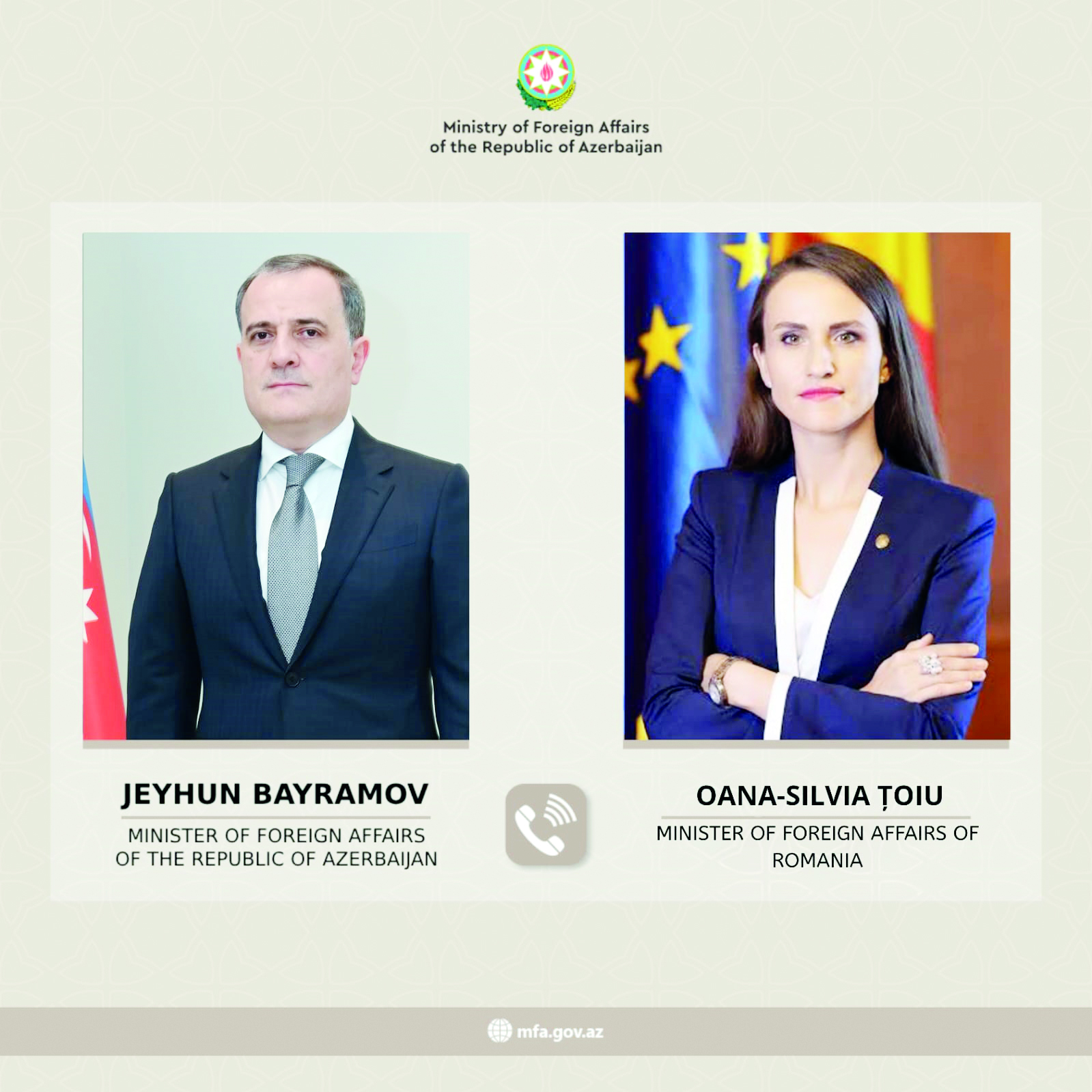 Həmin gün Azərbaycanın xarici işlər naziri Ceyhun Bayramov ilə Rumıniyanın xarici işlər naziri Oana-Silvia Toiu arasında telefon danışığı baş tutub.
