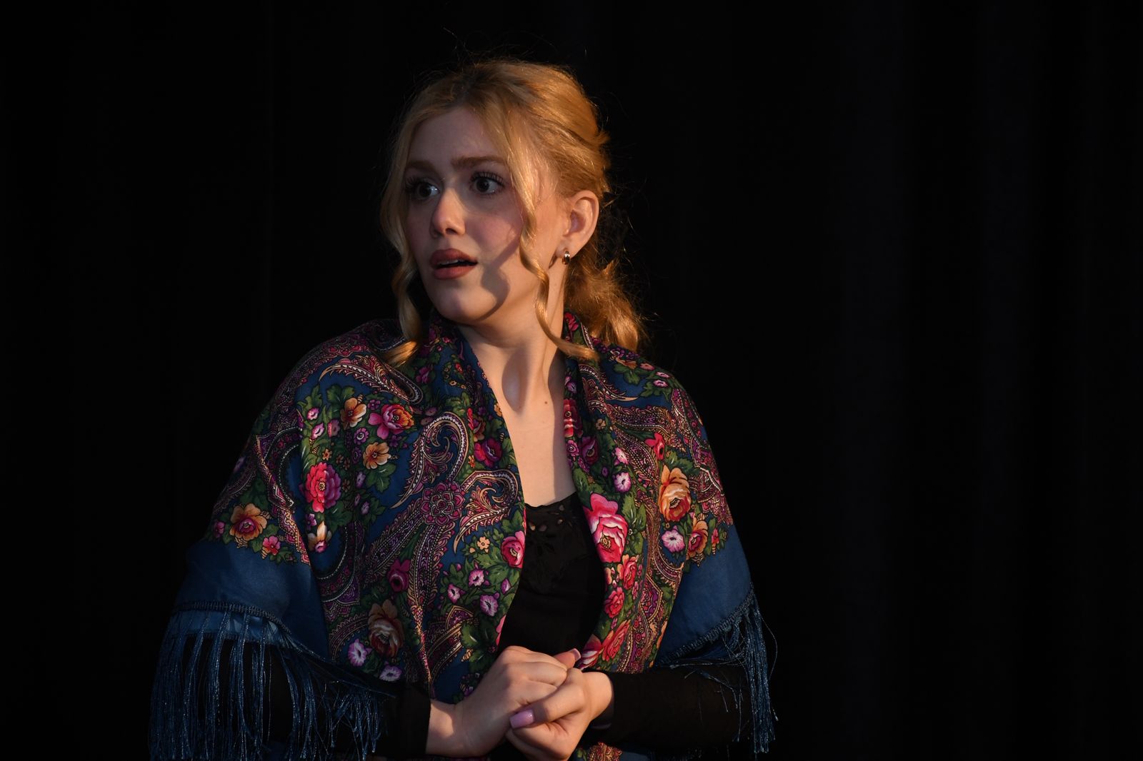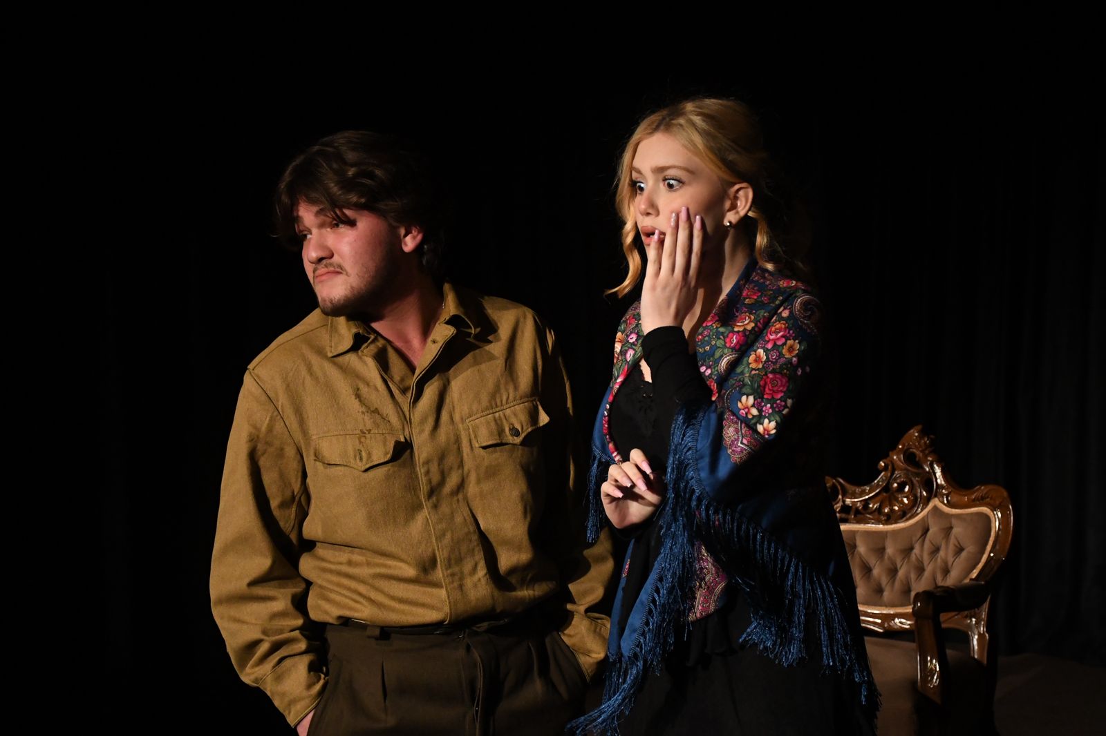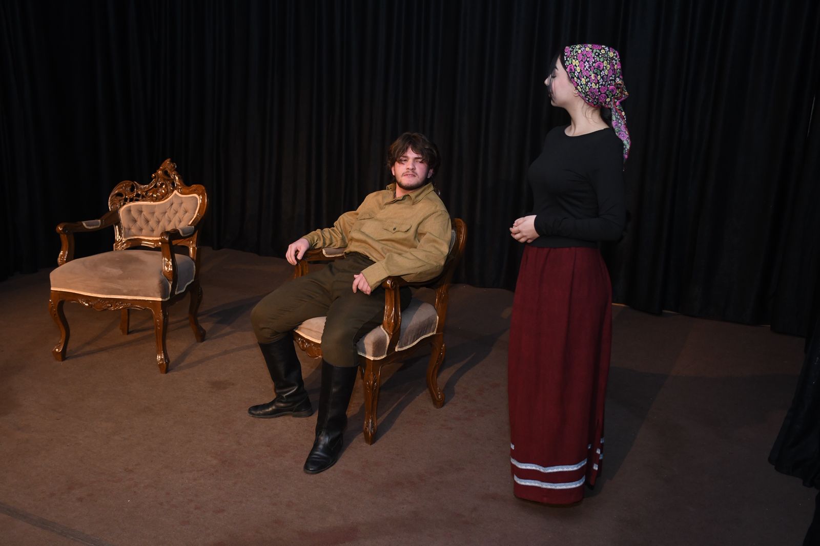 Səhnə əsərində İncəsənət Universitetinin tələbələri Hüseyn Quluzadə (Qriqori Stepanoviç Smirnov), Türkel Ələsgər (Yelena İvanovna Popova), Nərmin Ağayeva (Anfisa) iştirak edirlər.