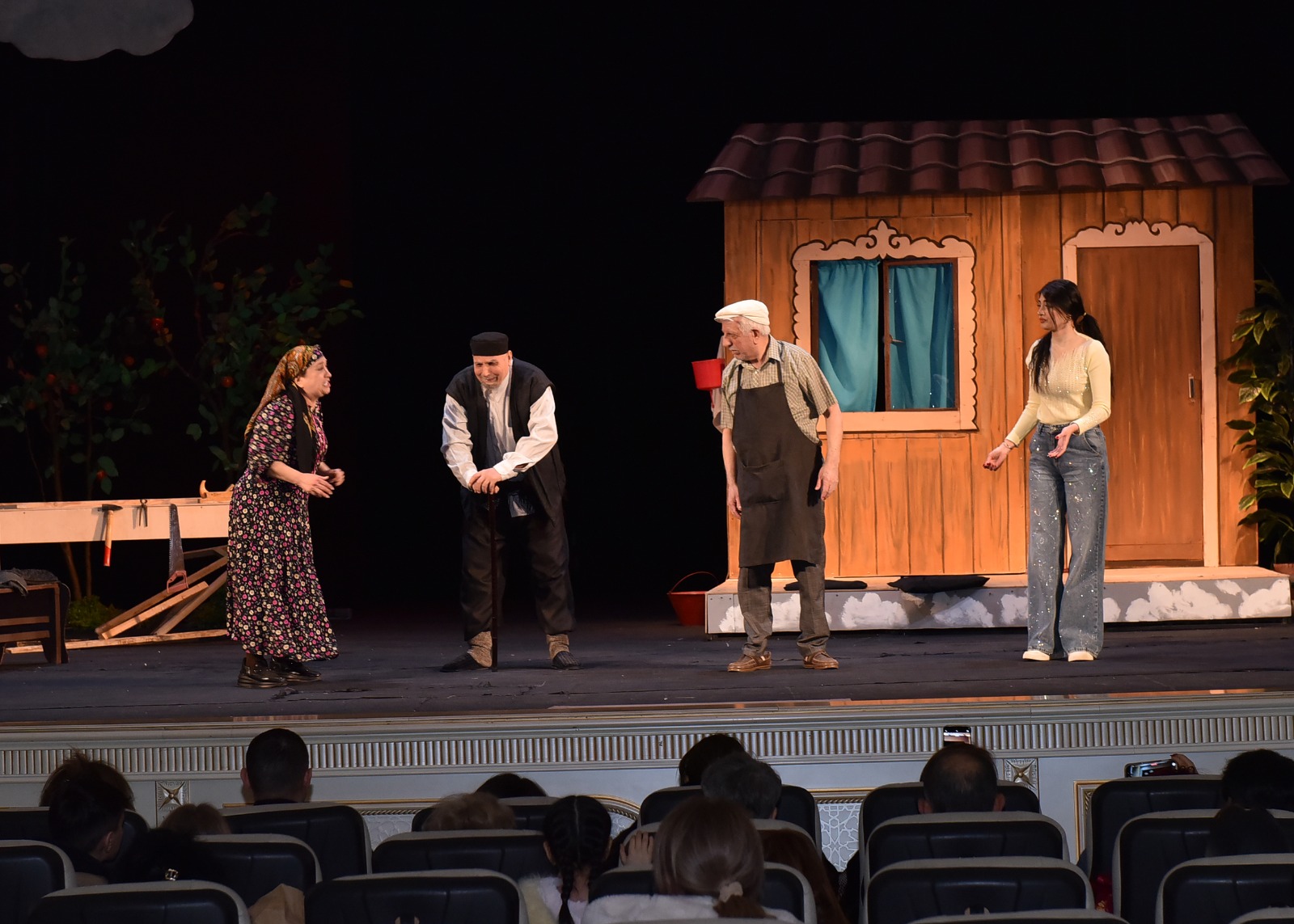 Yeni səhnə əsərinin quruluşçu rejissoru Sumqayıt Dövlət Dram Teatrının aktyoru, Xalq artisti, Prezident təqaüdçüsü Valeh Kərimovdur. Tamaşanın quruluşçu rəssamı Nizami Dadaşev, musiqi tərtibatçısı Gülcahan Yusifova, rejissor köməkçisi Ləman Məmmədli, rəqslərin quruluşçusu isə Kamil Ağazadədir. Səhnə əsərində Əməkdar artistlər Fəranə Musayeva və İlahə Səfərova, aktyorlar Oktay Mehdiyev, Akif Mirzəyev, Şəms Abdullayeva, Füzuli Qərənizadə, Elay Xasiyev və Aynur Hümmətova rol alırlar.