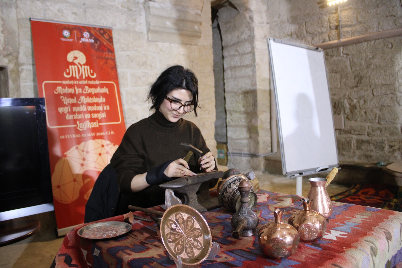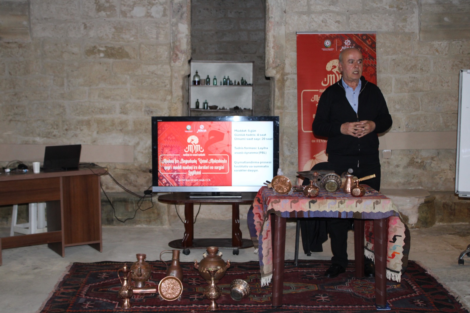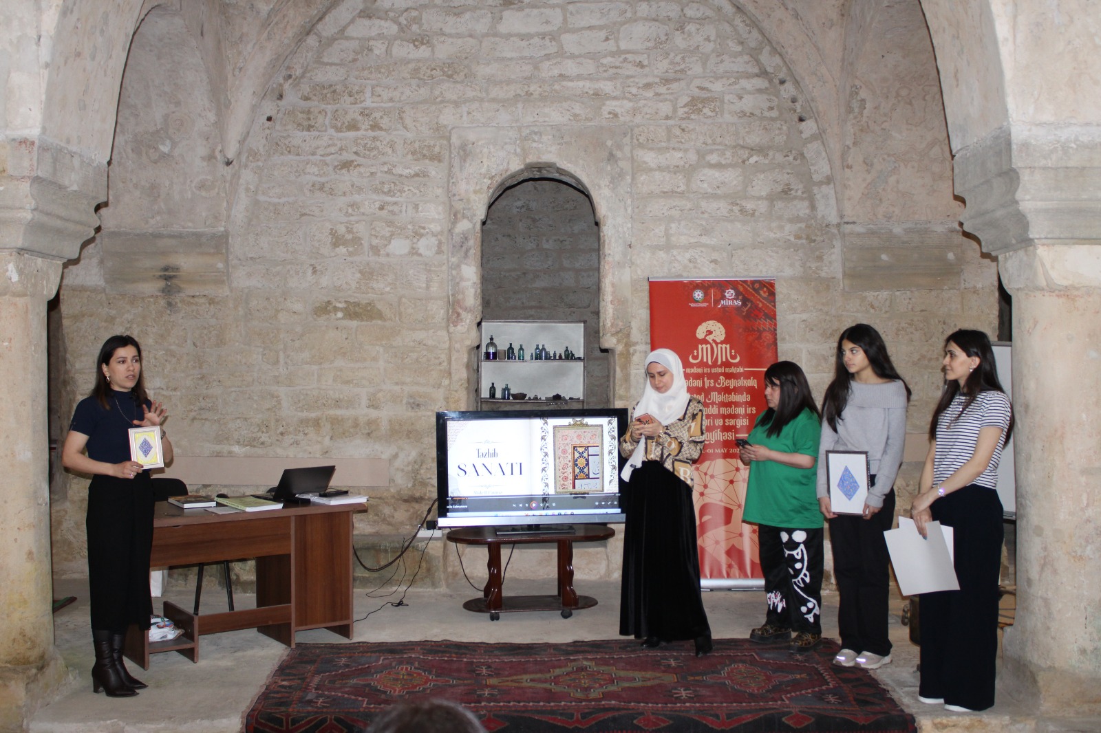 Aprelin 6-10-da Bakı şəhərində yerləşən Zərgərpalan hamamında Beynəlxalq Mədəni İrs Ustad Məktəbi çərçivəsində təşkil olunan dərs proqramlarının beşinci tematik qrupu - “Xalq sənətkarlığı və təsviri-dekorativ sənət” üzrə təlimlər keçirilib.