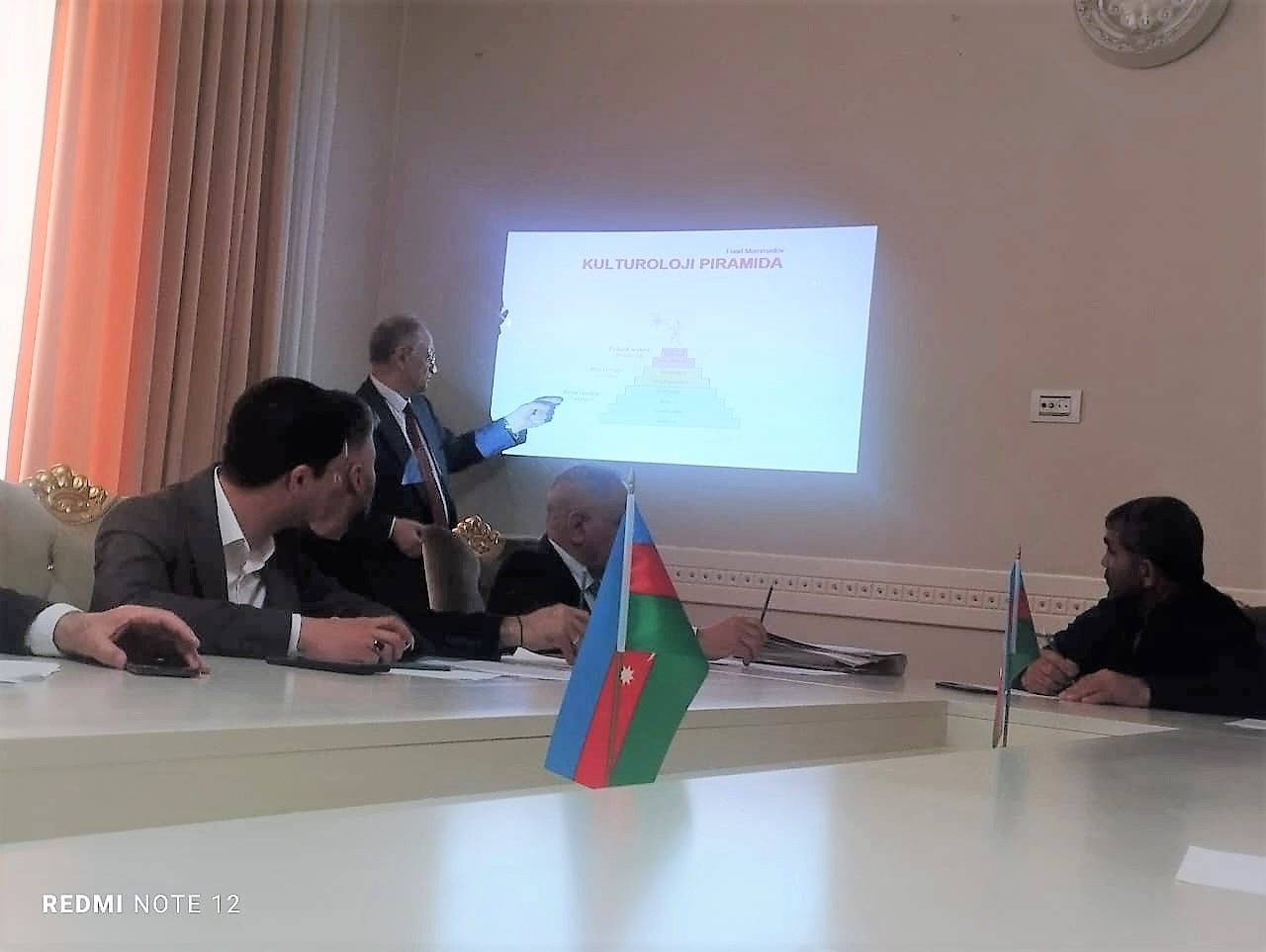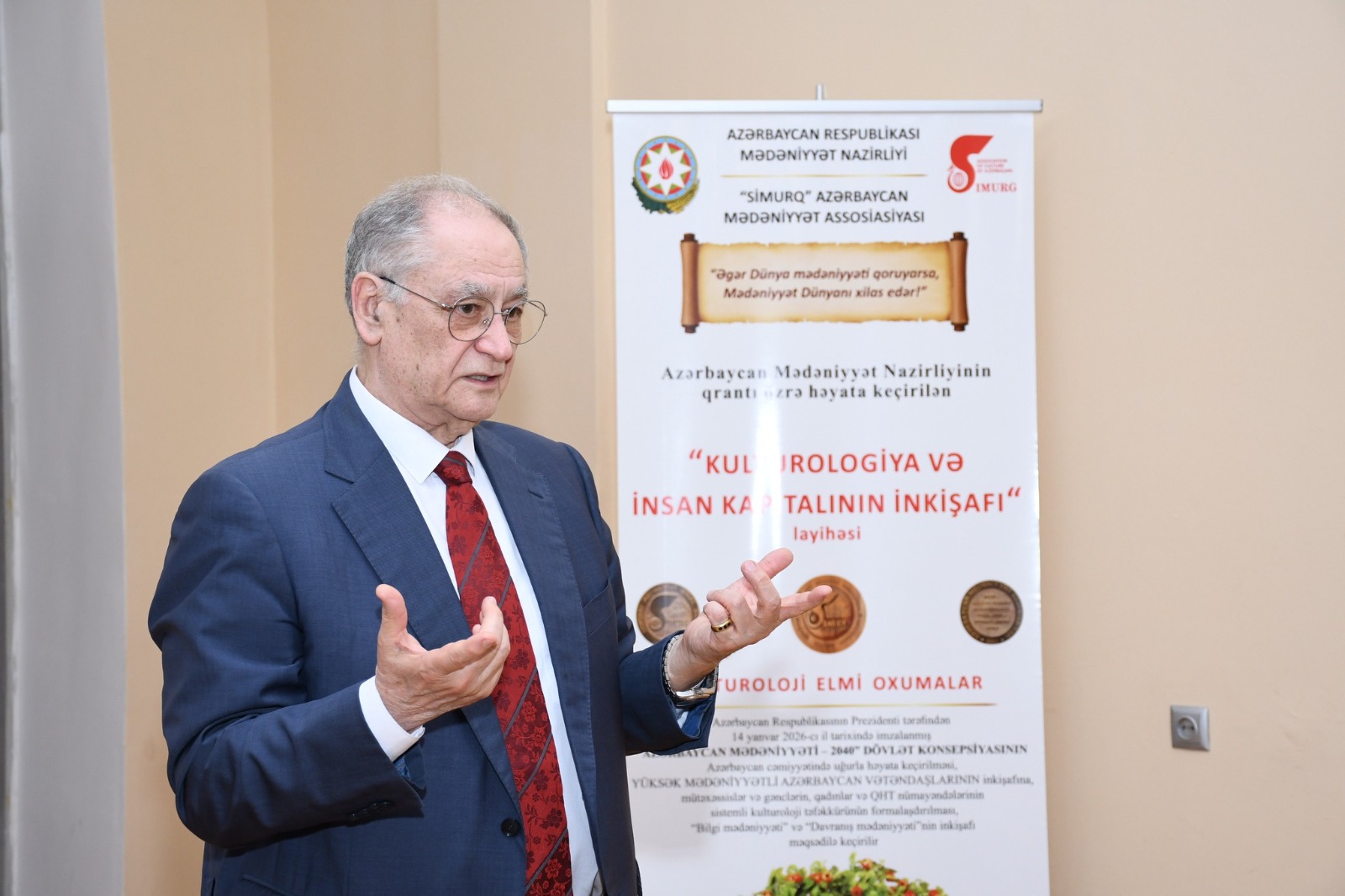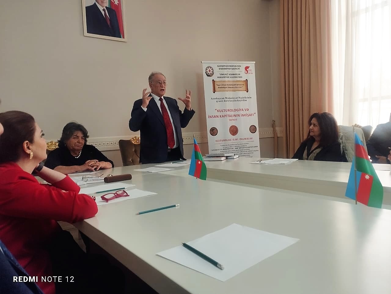 Professor Səlahəddin Əyyubov “Universal kulturoloji biliklərin yayılması və Azərbaycanda mədəniyyət haqqında yeni qanunun qəbul edilməsi zərurəti haqqında” mövzusunda məruzə edib. Çıxışda mədəniyyət siyasətinin daha sistemli qurulması, kulturoloji biliklərin geniş yayılması və mədəni inkişafın hüquqi əsaslarının möhkəmləndirilməsinin əhəmiyyəti vurğulanıb.