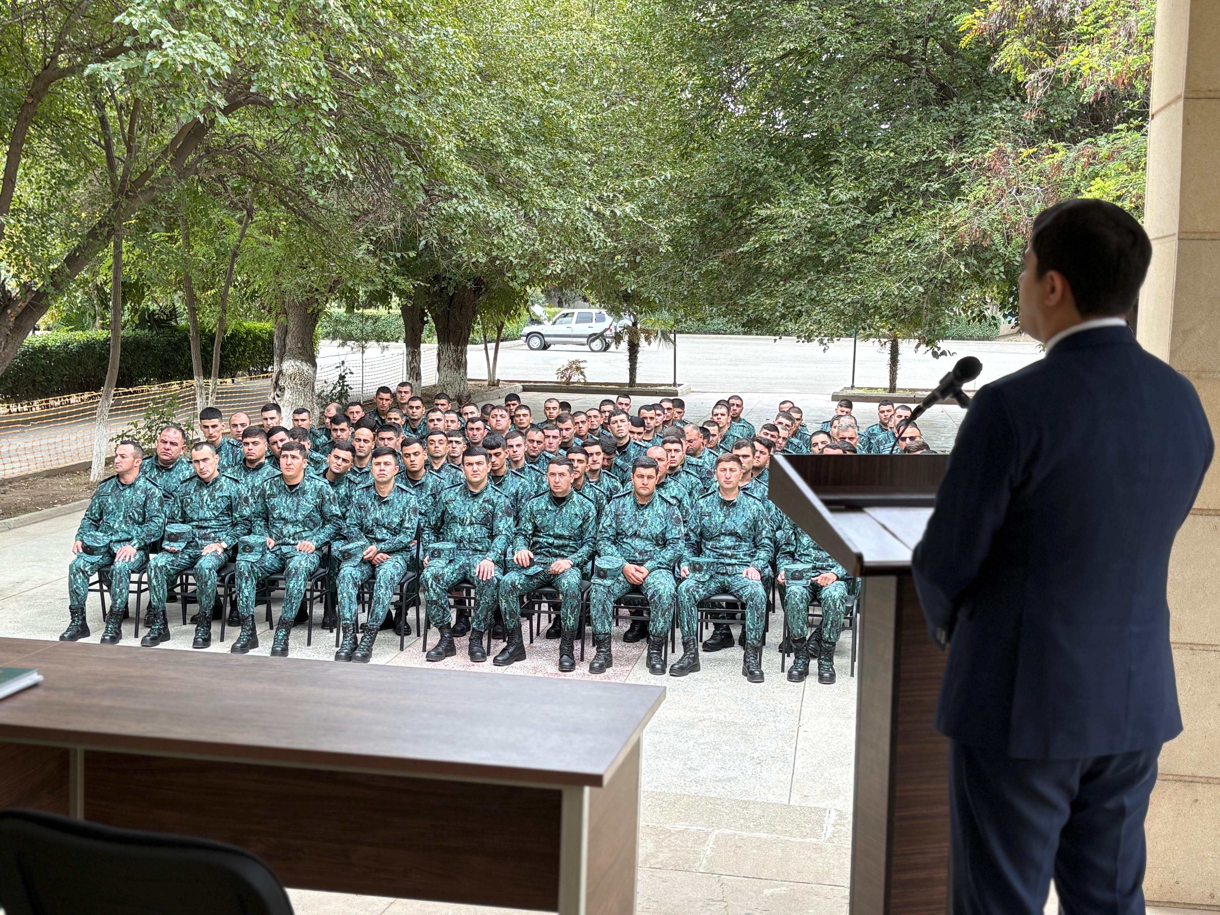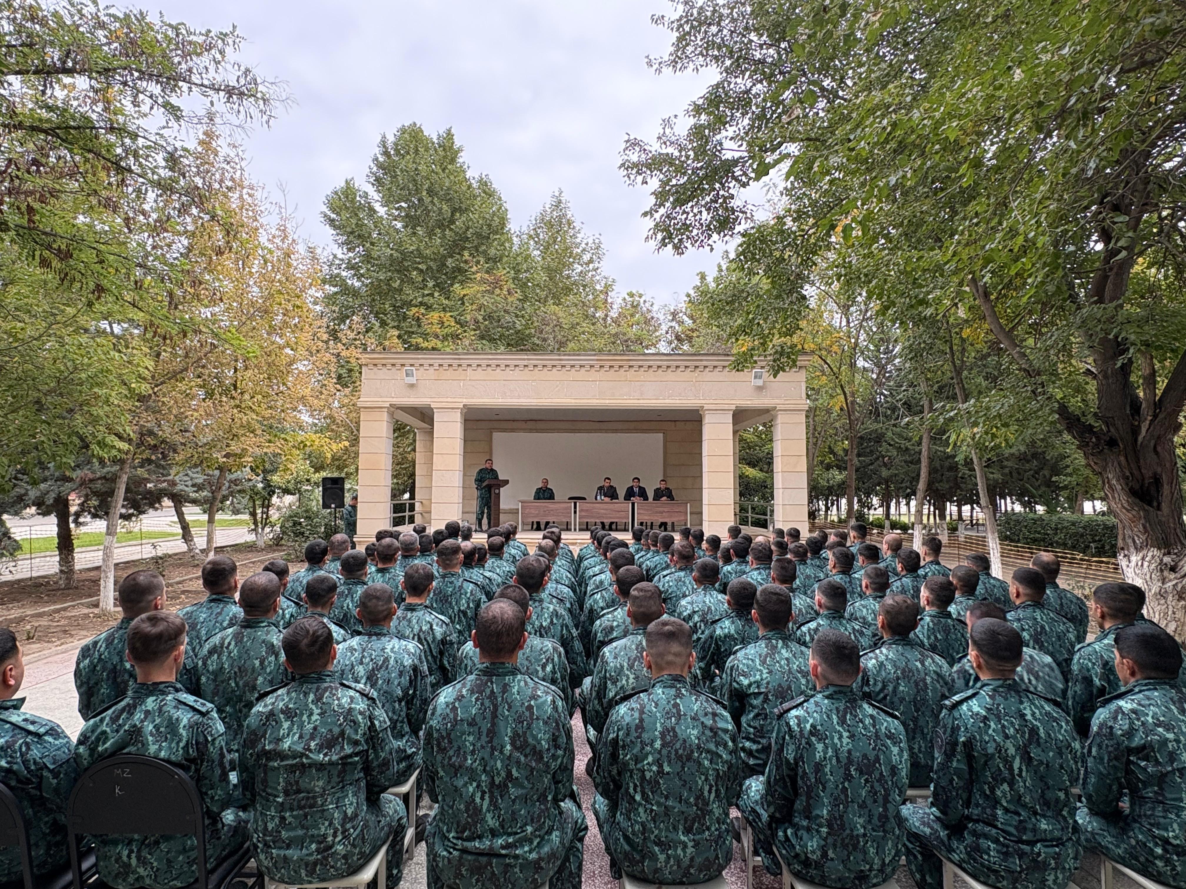 Tədbirin davamında hərbi xidmət əleyhinə olan cinayətlər barədə vacib məsələlər şəxsi heyətin diqqətinə çatdırılmış, hərbi xidmətin təkcə fiziki bacarıq və fədakarlıq deyil, eyni zamanda ciddi hüquqi məsuliyyət tələb edən vəzifə olduğu, əmrə tabe olmama kimi hərəkətlərin yalnız fərdi məsuliyyət yaratmadığı, eyni zamanda xidmət kollektivinə və dövlətin müdafiə qabiliyyətinə ciddi ziyan vurduğu bildirilmiş, bu cür hüquq pozuntularına qarşı mübarizədə birgə səyin vacibliyi xüsusi qeyd edilib.