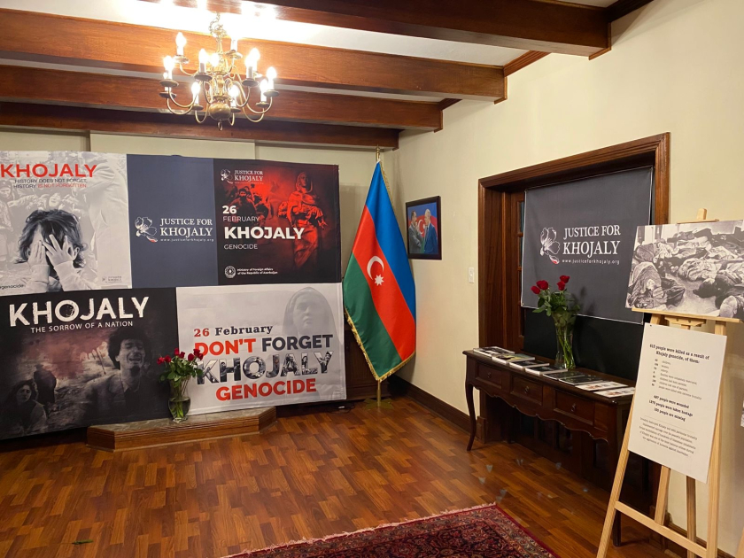 Sonra tədbir iştirakçıları səfirlikdə Xocalı soyqırımına həsr edilən fotosərgi, eyni zamanda, törətdilən bəşəri cinayətləri əks etdirən material və kitablarla tanış olublar.