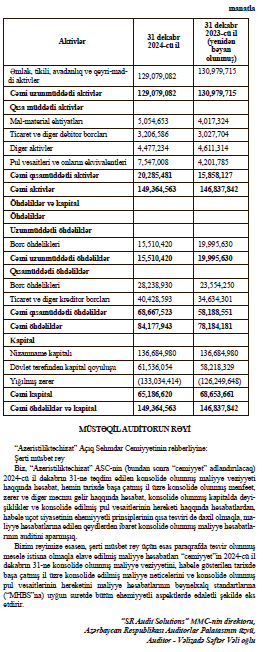 “Azəristiliktəchizat” Açıq Səhmdar Cəmiyyətinin 2024-cü il dekabrın 31-nə mühasibat balansı
