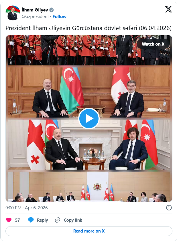 Azərbaycan Prezidenti İlham Əliyevin sosial media hesablarında Gürcüstana dövlət səfəri ilə bağlı videoçarx paylaşılıb.