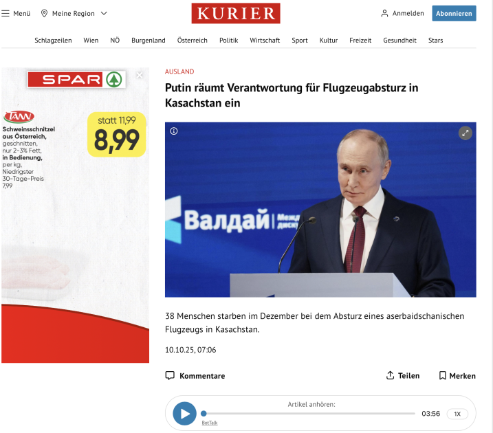 Avstriyanın aparıcı media orqanları (ORF Teleradiosu, “Die Presse“, “Kronenzeitung“, “Kurier“ gündəlik qəzetləri) Azərbaycan Prezidenti İlham Əliyevin Rusiya Federasiyasının Prezidenti Vladimir Putinlə Düşənbədə keçirilən görüşünə geniş diqqət ayırıblar.