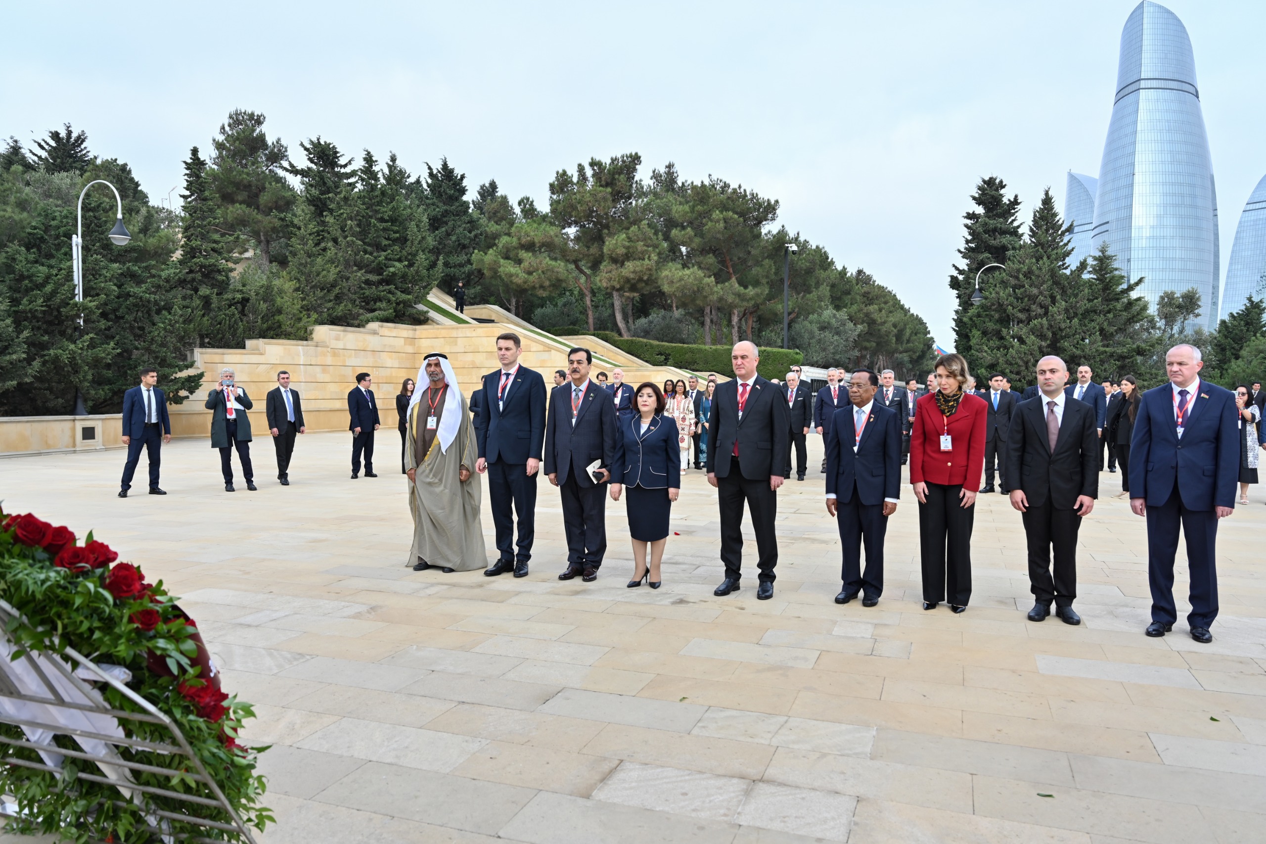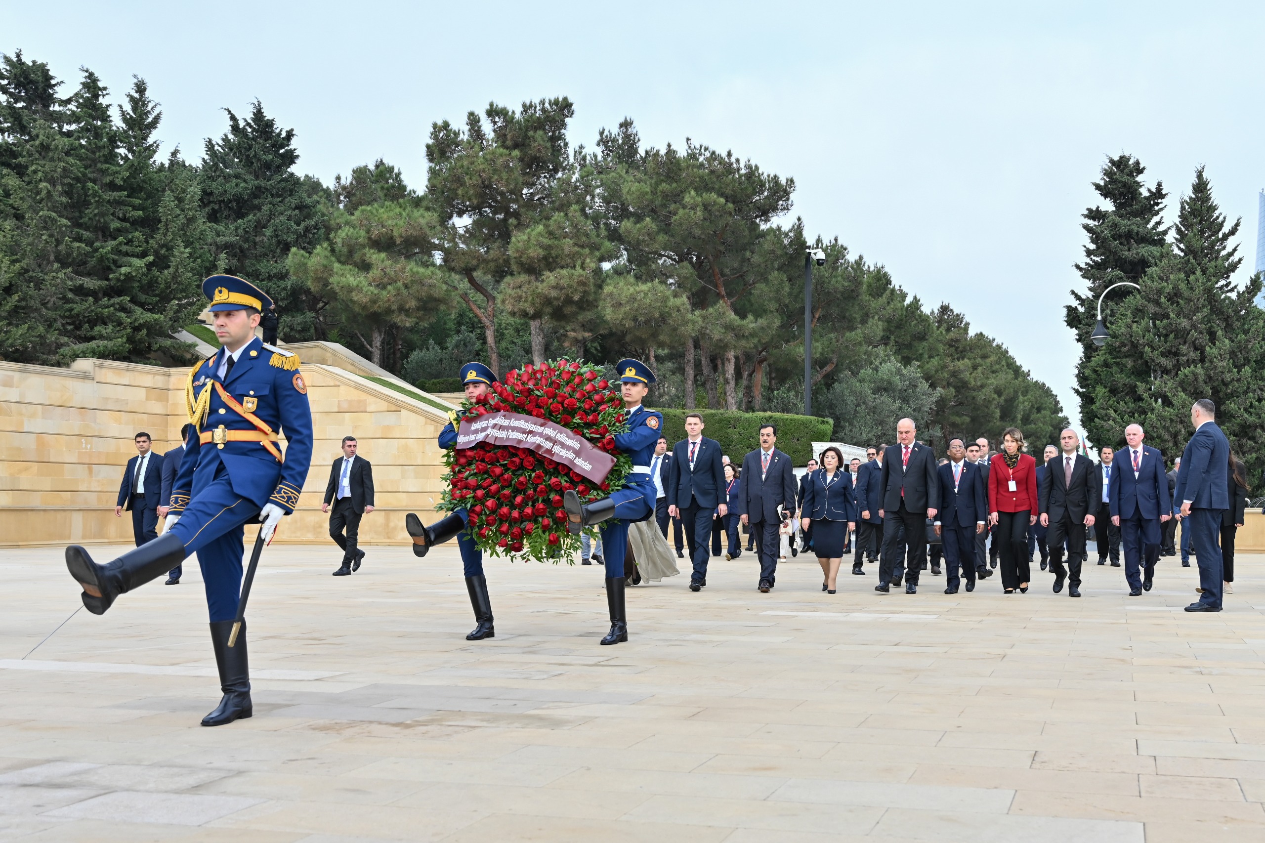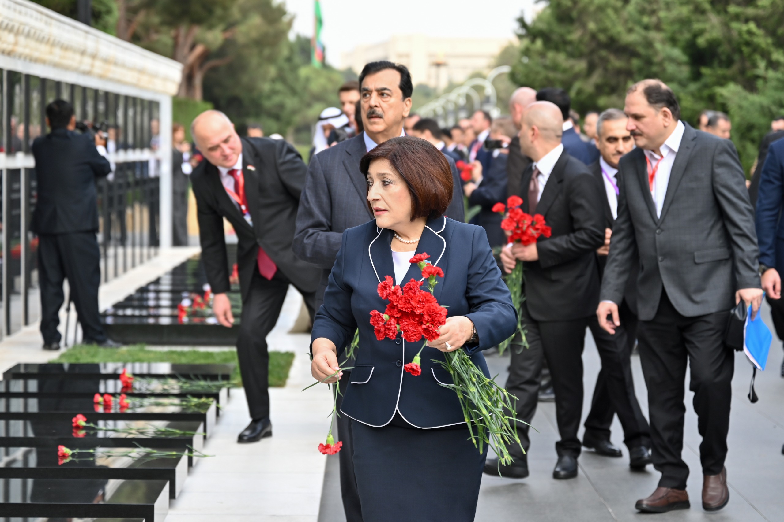 XQ xəbər verir ki, Sahibə Qafarova, Pakistan İslam Respublikası Senatının sədri Syed Yusuf Raza Gilani, Tacikistan Respublikası Ali Məclisi Nümayəndələr Palatasının sədri Fayzali İdizoda, Rumıniya Parlamenti Senatının sədri Mirça Abrudean, eləcə də digər ölkələrin parlament nümayəndə heyətlərinin rəhbərləri və üzvləri, beynəlxalq təşkilatların təmsilçiləri əvvəlcə Fəxri xiyabana gələrək xalqımızın Ümummilli Lideri, müasir müstəqil Azərbaycan dövlətinin memarı və qurucusu Heydər Əliyevin xatirəsini dərin ehtiramla yad edib, məzarı önünə əklil qoyub.