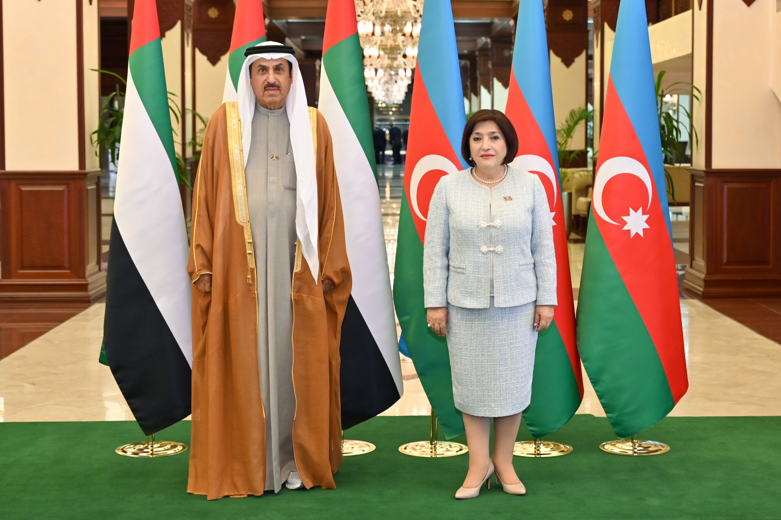 Sonra Milli Məclisin sədri Sahibə Qafarova ilə Birləşmiş Ərəb Əmirlikləri Federal Milli Şurasının sədri Saqr Qobaş arasında təkbətək görüş keçirilib, ardınca nümayəndə heyətlərinin iştirakı ilə geniş tərkibdə görüş davam etdirilib.