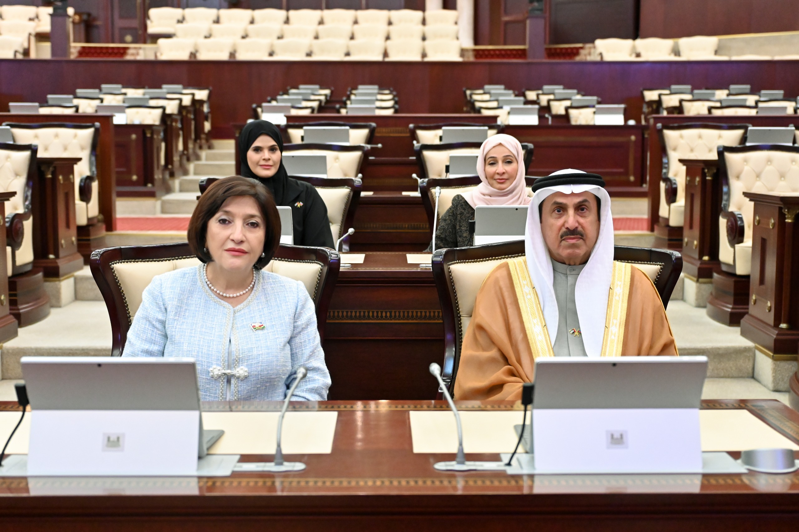 Parlamentin spikeri BƏƏ Federal Milli Şurasının sədrinin ölkəmizə ilk rəsmi səfərini yüksək qiymətləndirərək, bu səfərin iki ölkə arasında dostluq əlaqələrinin daha da möhkəmlənməsi, əməkdaşlıq imkanlarının genişlənməsi və parlamentlərarası münasibətlərin dərinləşməsinə mühüm töhfə verəcəyinə əminliyini ifadə edib. Sahibə Qafarova cari ilin may ayında Birləşmiş Ərəb Əmirliklərinə etdiyi rəsmi səfəri məmnunluqla xatırlayaraq, səfər zamanı keçirilən görüşlərin, aparılan danışıqların və parlamentlər arasında imzalanmış əməkdaşlığa dair Anlaşma Memorandumunun əhəmiyyətini vurğulayıb.
