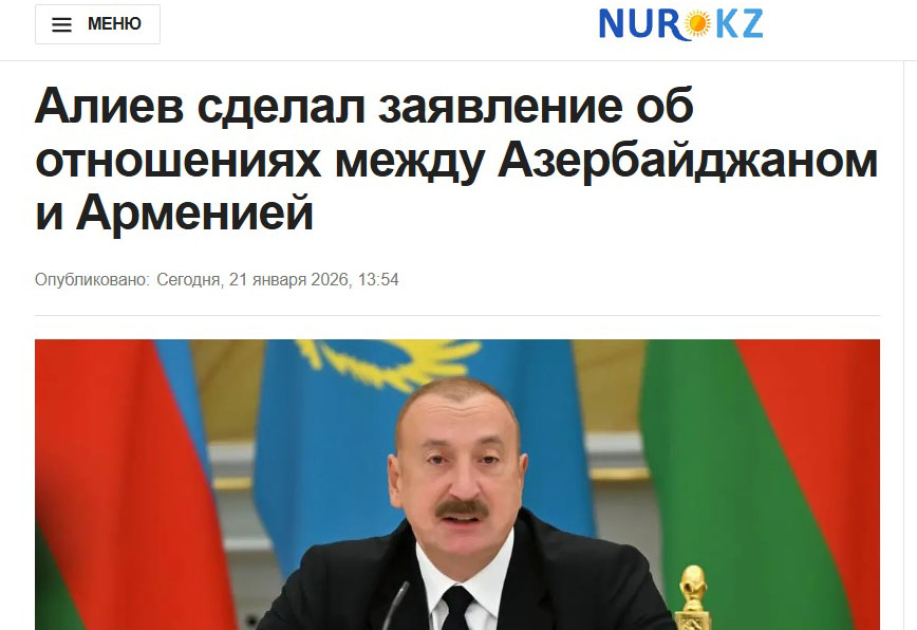 AZƏRTAC xəbər verir ki, “Kazinform” agentliyi Prezident İlham Əliyevin Bakı və İrəvanın çoxillik münaqişə səhifəsini bağlamaq və dayanıqlı sülhə keçmək üzrə tarixi qərar qəbul etdikləri barədə sözlərini sitat gətirir.
