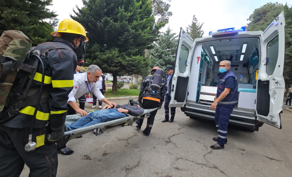 FHN-in Şimal Regional Mərkəzi, Dövlət Yanğından Mühafizə və Dövlət Yanğın Nəzarəti xidmətlərinin müvafiq canlı qüvvə və texnikasının cəlb edildiyi təlimin keçirilməsində məqsəd tibb müəssisəsinin kollektivinə fövqəladə hallar, o cümlədən yanğın zamanı davranış qaydalarının aşılanması olub.