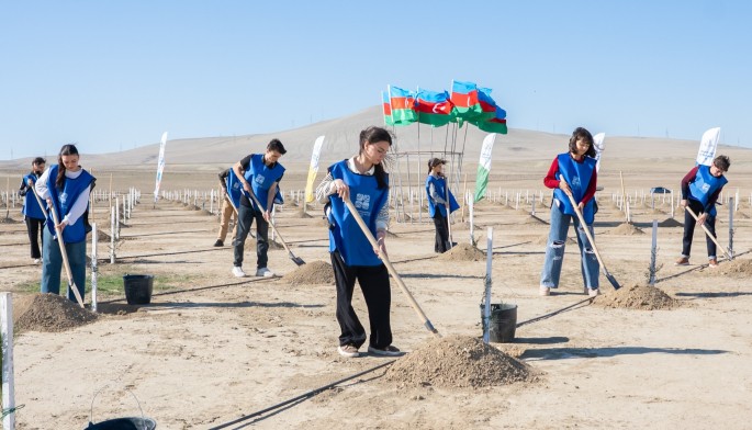 Aksiya çərçivəsində Müşfiqabad qəsəbəsində Abşeron yarımadasının torpaq-iqlim şəraitinə uyğun Eldar şamı və zeytun ağacları əkilib.