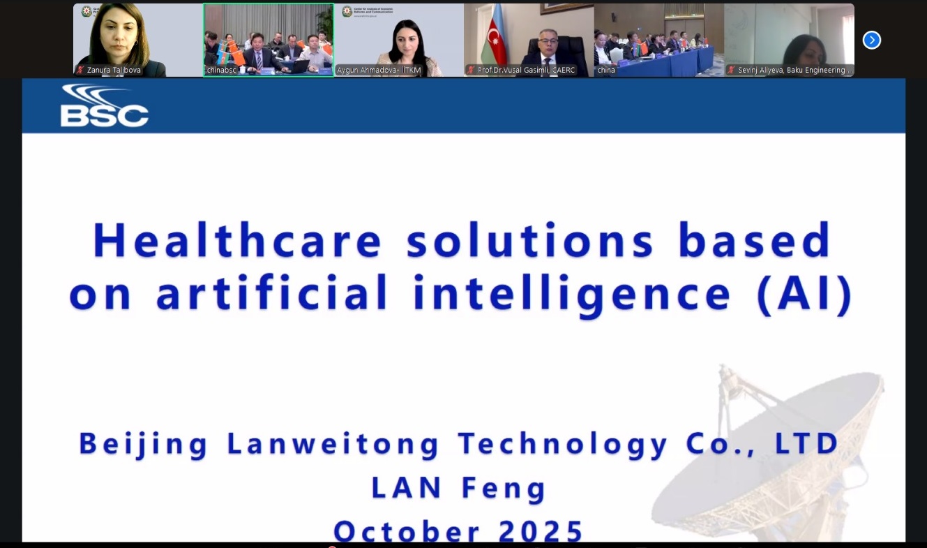 İqtisadi İslahatların Təhlili və Kommunikasiya Mərkəzinin (İİTKM) təşkilatçılığı, Çin Kiçik və Orta Bizneslərin İnkişafına Dəstək Mərkəzi və “Beijing Blue Satellite Communication Technology Co., Ltd.” şirkətinin tərəfdaşlığı ilə “Süni intellekt həlləri ilə səhiyyədə rəqəmsal transformasiya: Azərbaycan–Çin təcrübə mübadiləsi” mövzusunda onlayn seminar keçirilib. Məqsəd süni intellekt (Sİ) texnologiyalarının səhiyyə sisteminə inteqrasiyası üzrə Çin təcrübəsinin öyrənilməsi, Azərbaycanın səhiyyə sektorunda tətbiq imkanlarının müzakirəsi və iki ölkə arasında bu sahədə əməkdaşlıq üçün platformanın yaradılmasıdır.