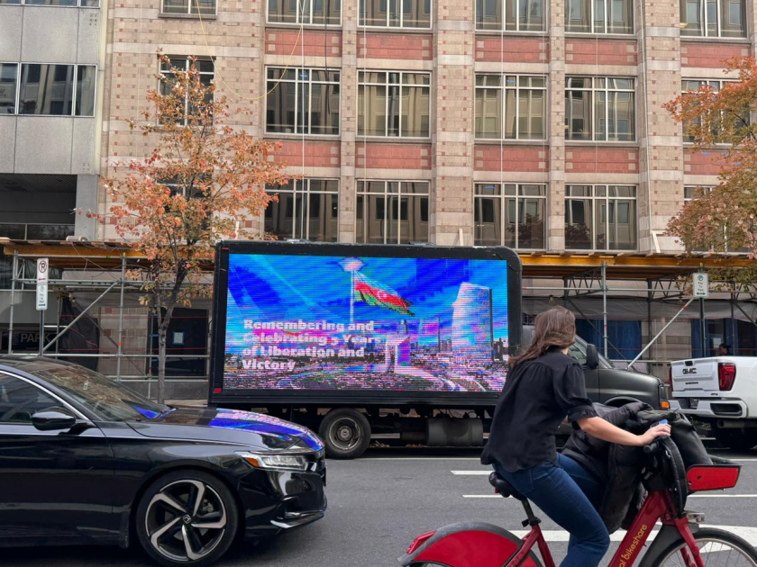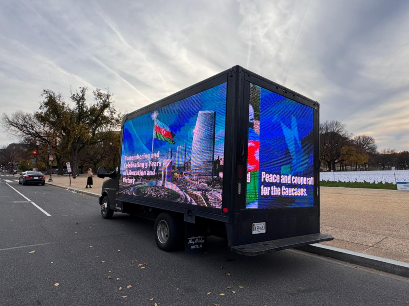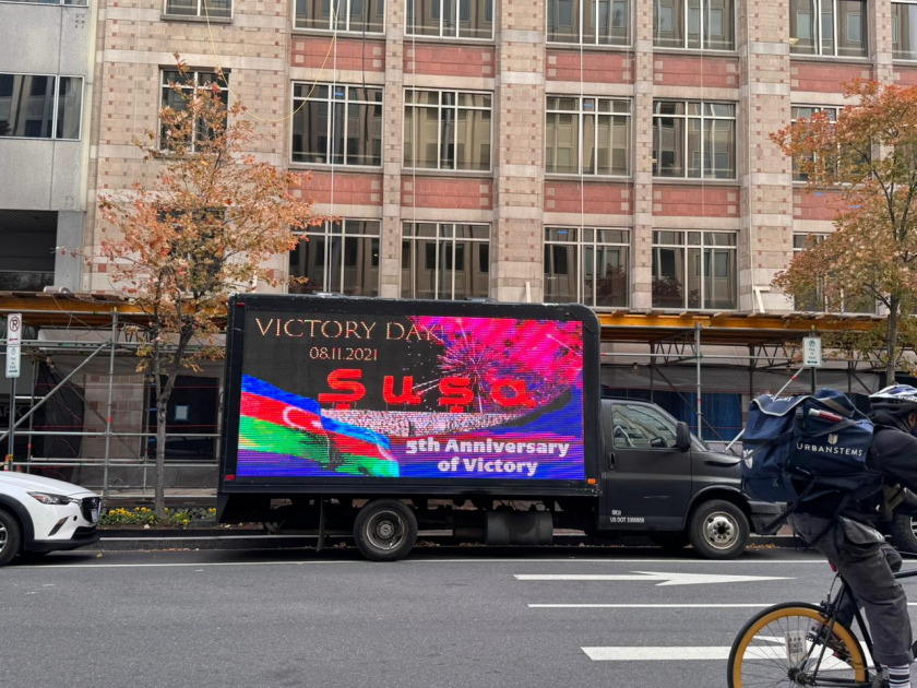 AZƏRTAC-ın məlumatına görə, Azərbaycanın qələbəsinə və Zəfər Gününə dair şüarların nümayiş olunduğu led ekranlı avtomobil ABŞ-ın əsas prospekt və küçələrində hərəkət edib. Ekranda “Cəsarətin 5 ili, qürurun 5 ili”, “Azərbaycan qalib gəldi, ədalət zəfər çaldı”, “Qələbəni mümkün edənləri anırıq”, “Birlikdə Qarabağda dayanıqlı sülh naminə”, “Qarabağ - sülh və ümidlər torpağı”, “Qafqazda sülh və əməkdaşlıq” və sair şüarlar yer alıb. Avtomobil 4 saata yaxın Ağ Ev, Vaşinqton abidəsi, Kapitol, Linkoln Memorialı kimi məşhur binaların yerləşdiyi küçələrdə hərəkətdə olub.