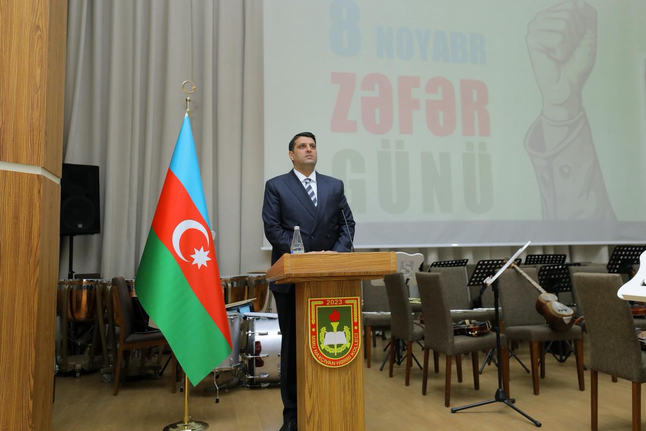 Noyabrın 8-də Naxçıvan Muxtar Respublikasında Azərbaycan Respublikası Prezidentinin səlahiyyətli nümayəndəliyinin dəstəyi, Naxçıvan Dövlət Universiteti və Milli Müdafiə Universitetinin tabeliyində fəaliyyət göstərən Naxçıvan Hərbi Kollecinin birgə təşkilatçılığı ilə “Zəfər Günü – əbədi qürurumuz” adlı tədbir keçirilib.
