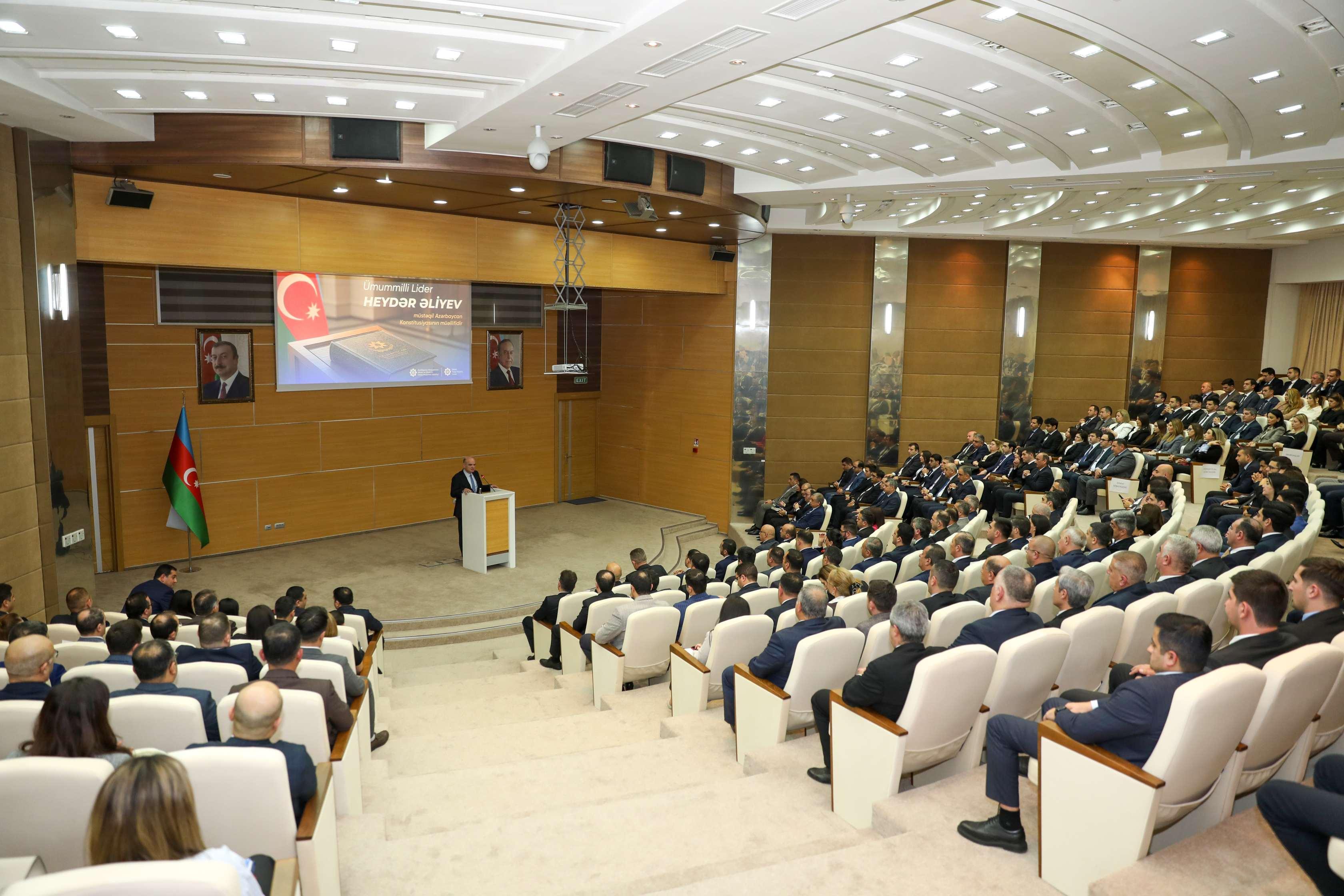 XQ xəbər verir ki, bu fikir Əmək və Əhalinin Sosial Müdafiəsi Nazirliyinin tabeliyində Dövlət Sosial Müdafiə Fondunda (DSMF) “Ümummilli Lider Heydər Əliyev müstəqil Azərbaycan Konstitusiyasının müəllifidir” mövzusunda keçirilən tədbirdə vurğulanıb.