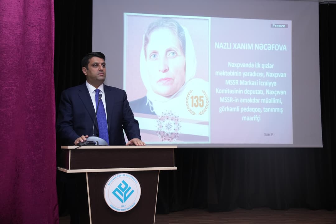 Naxçıvan Dövlət Universitetində Naxçıvanda ilk qızlar məktəbinin yaradıcısı, Naxçıvan MSSR Mərkəzi İcraiyyə Komitəsinin deputatı, Naxçıvan MSSR-in Əməkdar müəllimi, tanınmış maarifçi Nazlı xanım Nəcəfovanın 135 illik yubileyinə həsr olunmuş konfrans keçirilib. Bu haqda “Xalq” qəzetinə universitetin mətbuat və ictimaiyyətlə əlaqələr şöbəsindən məlumat verilib.