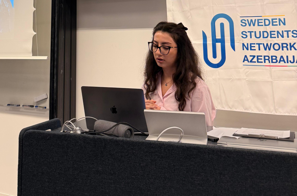 Müzakirələr zamanı Lund Universitetində “Environmental Studies and Sustainability Sciences” ixtisası üzrə magistr təhsili alan Həmidəxanım Hüseynova da çıxış edib. O, Xəzər dənizindəki ekoloji böhran mövzusuna toxunaraq problemin regiona ümumi təsirləri və Prezident İlham Əliyevin BMT Baş Assambleyasının 80-ci sessiyasındakı çıxışında vurğuladığı məqamlar haqqında danışdı.
