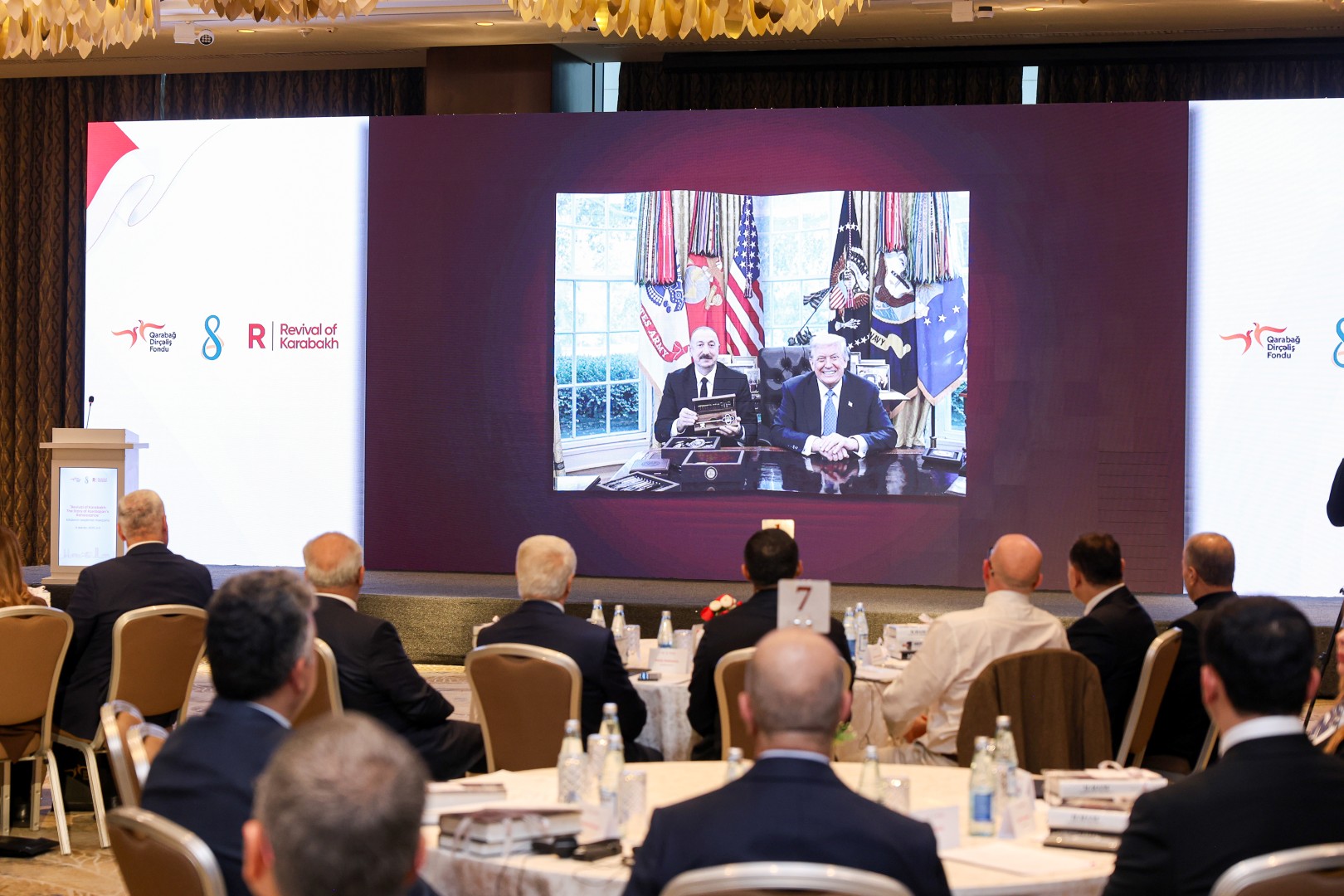 Sonra “Qarabağın Dirçəlişi: Azərbaycan İntibahının Hekayəsi” kitabının videotəqdimatı və işğaldan azad edilmiş ərazilərin bərpasını və dirçəlişini əks etdirən “Faciədən Zəfərə” videoçarxı nümayiş olunub.