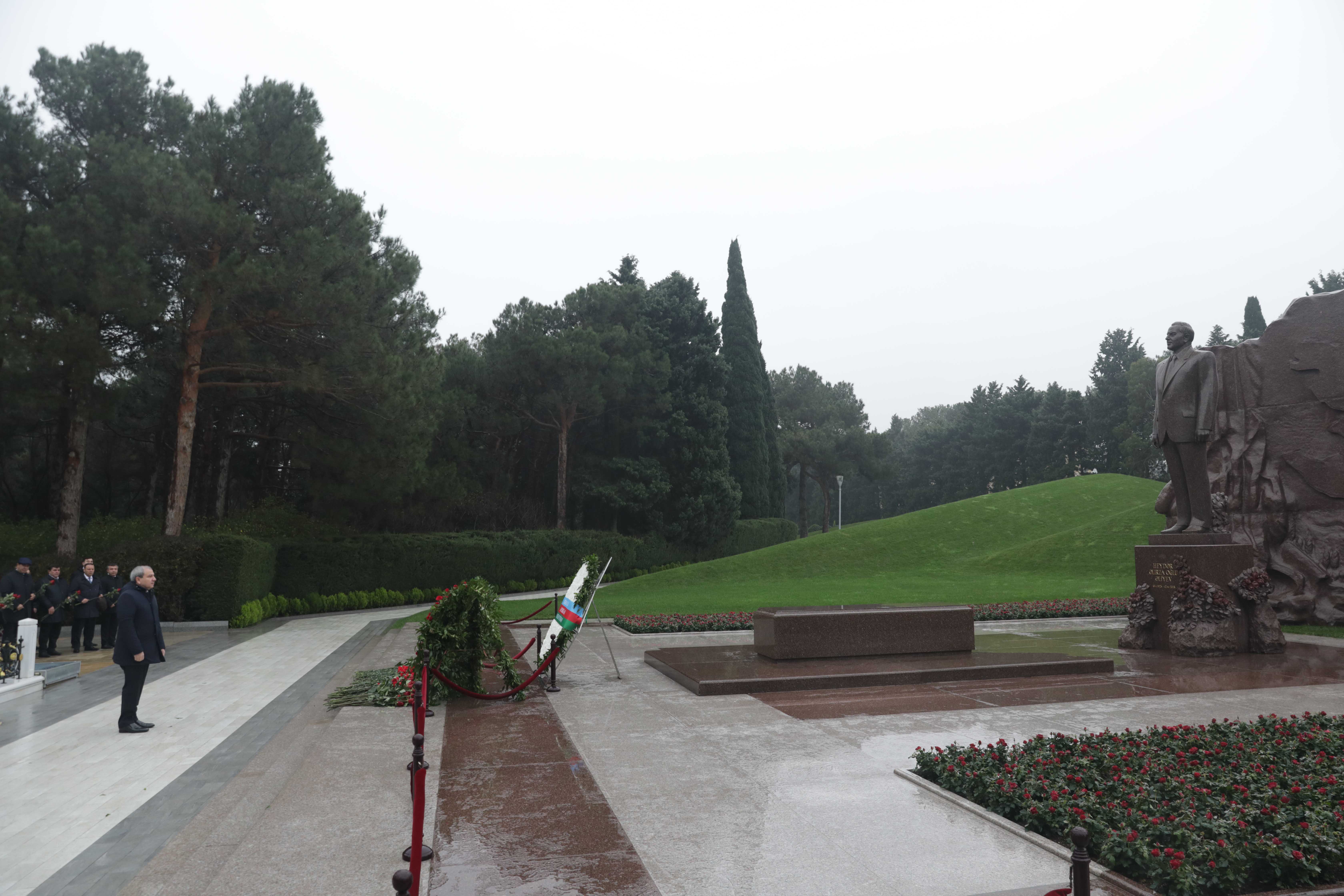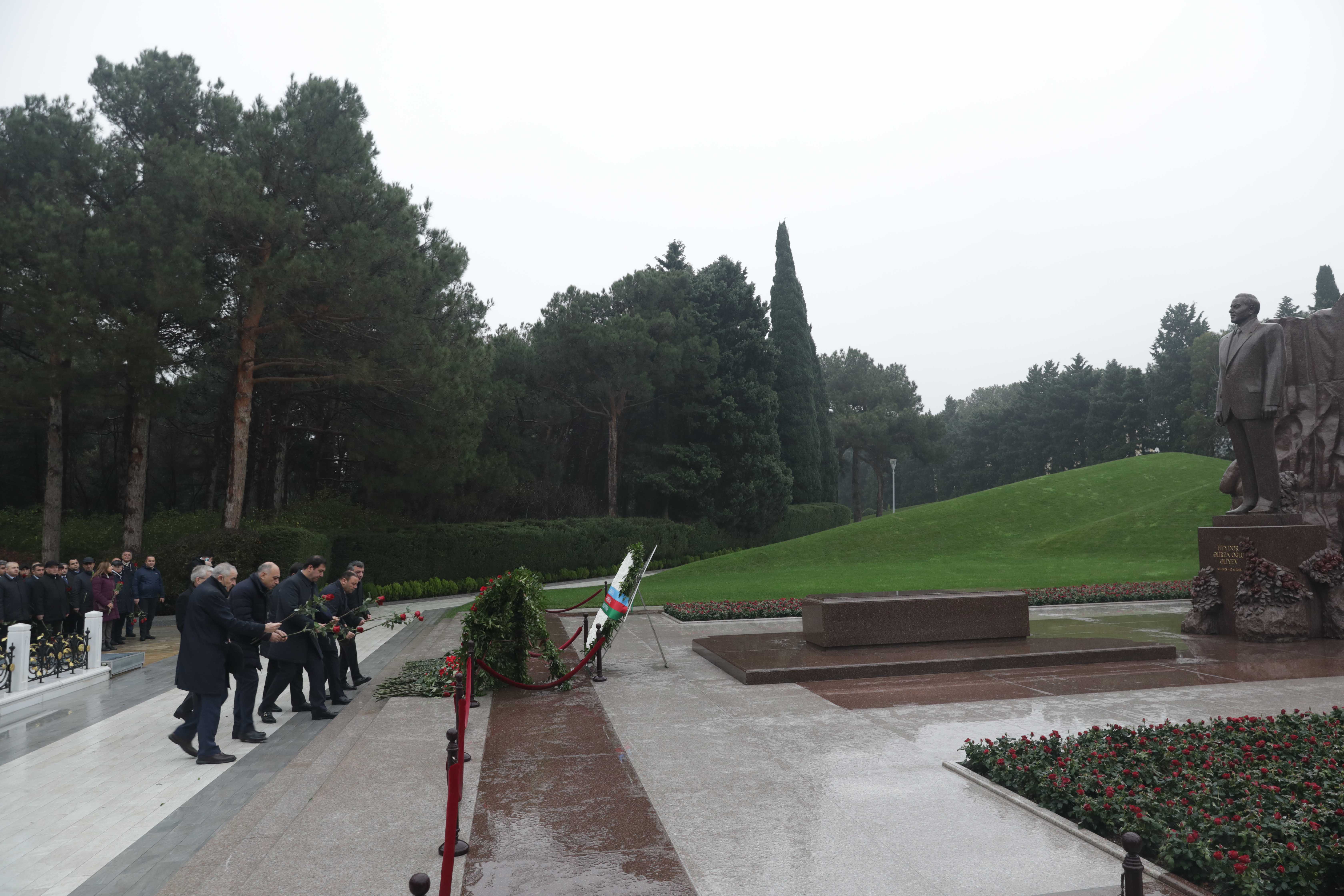 Ümummilli Liderin məzarı önünə gül dəstələri qoyulub, xatirəsi hörmət və ehtiramla yad olunub.