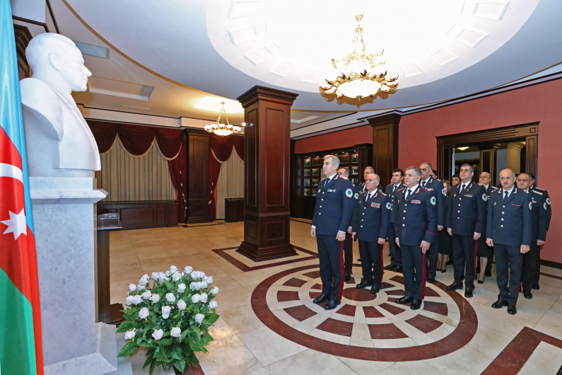 Əvvəlcə Dövlət Miqrasiya Xidməti aparatında yerləşən Heydər Əliyev muzeyi ziyarət olunub. Xidmətin akt zalında davam etdirilən tədbirdə Dövlət Himni səsləndirilib və görkəmli dövlət xadimi Heydər Əliyevin və Azərbaycanın ərazi bütövlüyü uğrunda canlarından keçərək şəhidlik zirvəsinə ucalmış qəhrəmanlarımızın əziz xatirəsi bir dəqiqəlik sükutla yad edilib.
