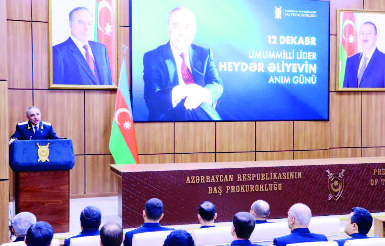 Ulu öndər Heydər Əliyevin və şəhidlərin xatirəsi 1 dəqiqəlik sükutla anılıb və Dövlət Himni səsləndirilib. Mərasimdə çıxış edən Baş prokuror Kamran Əliyev bildirib ki, 2025-ci ilin ölkəmizdə “Konstitusiya və Suverenlik İli” elan edilməsi Heydər Əliyevin dövlət quruculuğundakı misilsiz xidmətlərinin məntiqi davamı olmaqla, onun dövlətçilik irsinə dərin ehtiramın göstəricisidir. Ulu öndərin həm sovet dövründə respublikamızı böyük inkişaf yoluna çıxarması, həm 20 Yanvar faciəsi zamanı xalqın hüquqlarını cəsarətlə müdafiə etməsi, həm də 1993-cü ildə ölkəyə rəhbərliyə qayıdaraq siyasi xaosu aradan qaldırması müasir Azərbaycanın taleyində həlledici rol oynayıb. 1994-cü il atəşkəsi, “Əsrin müqaviləsi”nin imzalanması, qlobal enerji və infrastruktur layihələrinin həyata keçirilməsi, eləcə də hüquq sistemində aparılan islahatlar Azərbaycanın dayanıqlı və güclü dövlətə çevrilməsi üçün möhkəm baza yaratmışdır.