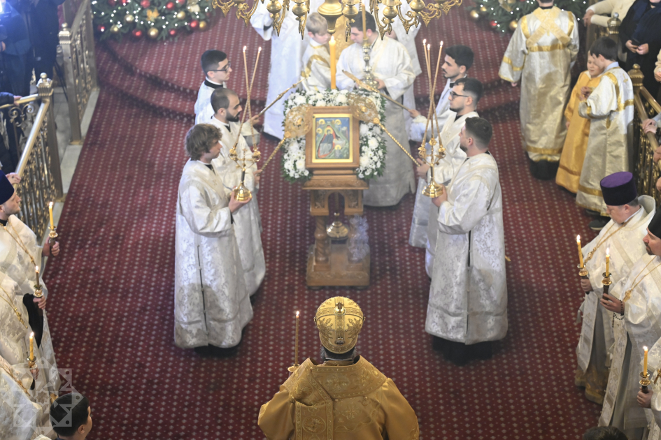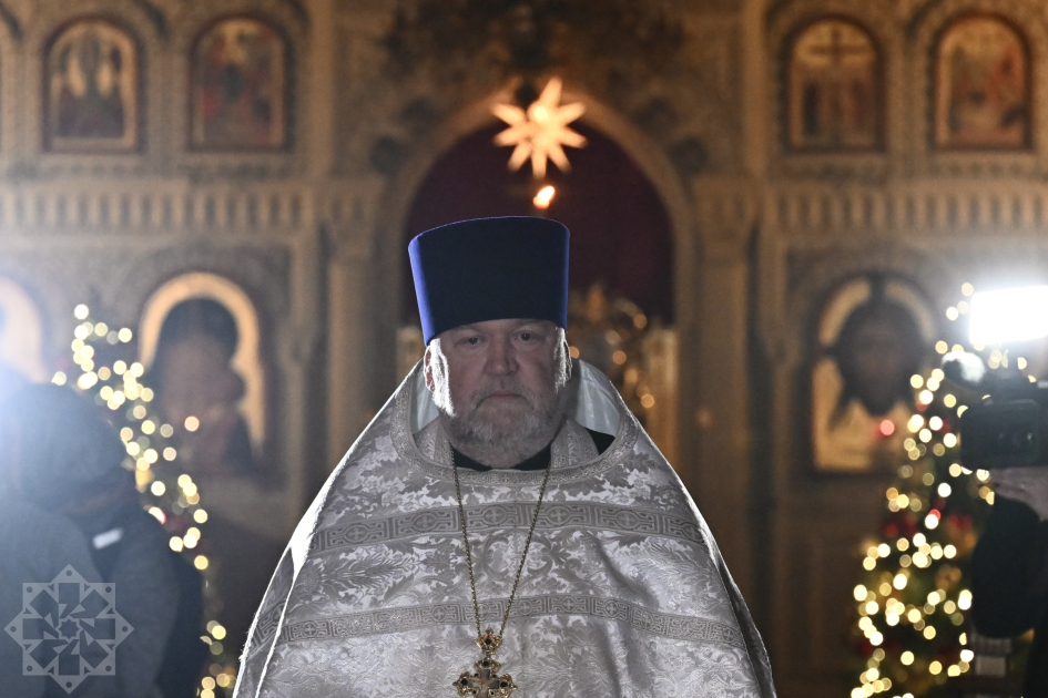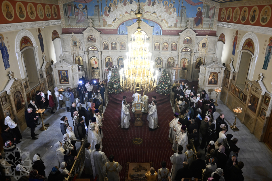 Milad gecəsi yepiskop Aleksi Müqəddəs Mürr-daşıyan Zənənlər Kafedralı və ya “Jen Mironosits” pravoslav kafedral kilsəsində İlahi liturgiyanı icra edib. Arxiyereyə kafedral ruhanilər xidmət göstəriblər.