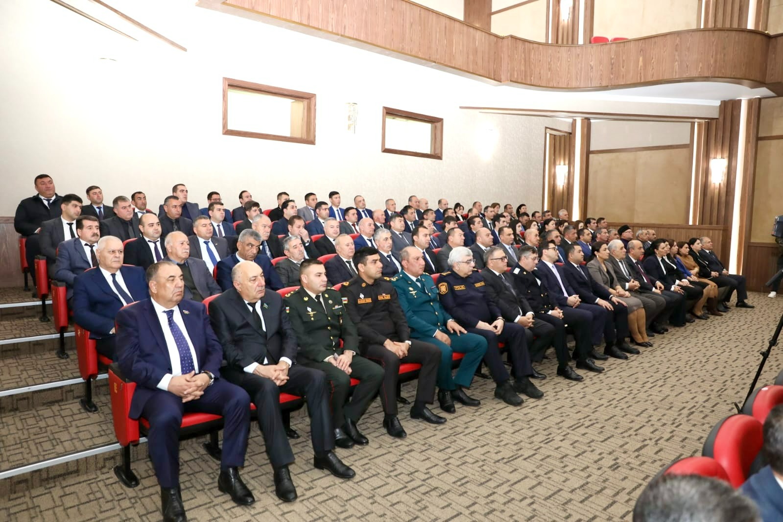 Azərbaycan Respublikası Prezidentinin Administrasiyasının, Ərazi-təşkilat məsələləri şöbəsinin 13-cü ərazi sektorunun müdiri Çingiz Əliyev tədbirdə çıxış edərək Ümummilli Lider Heydər Əliyevin siyasətinin Prezident İlham Əliyev tərəfindən davam etdirilməsinin uğurlu nəticələrindən bəhs edib. Bildirib ki, son 5 ildə beynəlxalq aləmdə günü-gündən artan nüfuz, aparılan çoxşaxəli islahatlar, yeni infrastruktur layihələrin həyata keçirilməsi Azərbaycanın tarixi nailiyyətləridir. 2025-ci ildə Azərbaycanın valyuta ehtiyatları 80 milyard dollar, xarici borcu isə aşağı düşərək ümumi daxili məhsullara nisbətdə 6.3 faiz təşkil edib. Valyuta ehtiyatları xarici borcu 16 dəfə üstələyib.