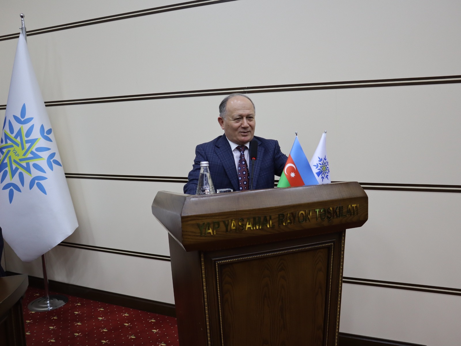 Çıxış edən YAP Yasamal rayon təşkilatının sədri Bəxtiyar Nəbiyev bildirib ki, Ulu öndər Heydər Əliyevin təməlini qoyduğu güclü dövlətçilik və ordu quruculuğu siyasəti 44 günlük Vətən müharibəsində tarixi Zəfərin təməlini yaratdı. Azərbaycan xalqı Müzəffər Ali Baş Komandan cənab İlham Əliyevin qətiyyətli və uzaqgörən rəhbərliyi ilə 44 günlük Vətən müharibəsində tarixi Zəfərə imza atdı. Bu Qələbə dövlətimizin siyasi iradəsinin, ordumuzun peşəkarlığının və xalq-ordu birliyinin parlaq təzahürü oldu. Tarixi ədalət bərpa olundu, torpaqlarımız azad edildi. Bu Zəfər müasir Azərbaycan tarixinin ən şanlı səhifəsidir. 2023-cü ilin sentyabrın 19-20-də həyata keçirilən anti terror tədbirləri nəticəsində isə ölkəmizin suverenliyi tam təmin olundu. Qazanılan uğurlar minlərlə şəhidimizin qanı, qazilərimizin fədakarlığı hesabına mümkün oldu. Prezident İlham Əliyevin illərlə apardığı ardıcıl və prinsipial siyasət bu qələbənin əsasını təşkil etdi. Güclü ordu quruculuğu və milli maraqlara söykənən strategiya Zəfəri labüd etdi. Azərbaycan xalqı qalib xalq kimi tarix səhnəsində öz yerini daha da möhkəmləndirdi. Bu gün bu qəhrəmanlıq yolunun unudulmaması milli vəzifəyə çevrilib. Respublika “Xatirə Kitabı” redaksiyasının “44 gün – Tarixi zəfər” adlı çoxcildlik nəşrləri bu ali missiyaya xidmət edir. Layihənin əvvəlki cildlərində əvvəlki müharibələrdə şəhid olmuş qəhrəmanlarımızın haqqında məlumatlar ensiklopedik şəkildə ümumiləşdirilib. IV cild isə bu salnamənin xüsusi mənəvi yük daşıyan hissəsidir. Burada xüsusilə 44 günlük Vətən müharibəsində şəhid olan qəhrəmanlarımızın həyat və döyüş yolu əks etdirilir. Bu nəşr Zəfərin əbədiliyini təmin edən mənəvi abidədir. O, gələcək nəsillərə qürur mənbəyi kimi ötürülür.