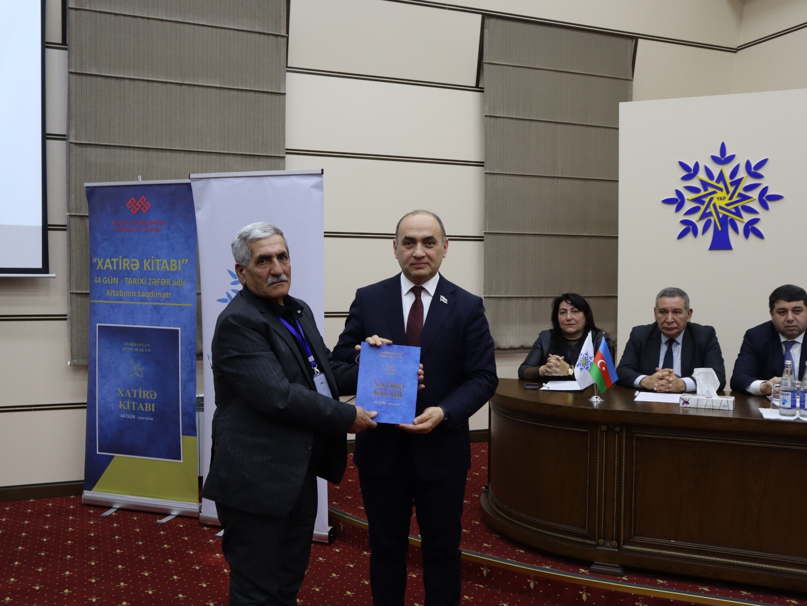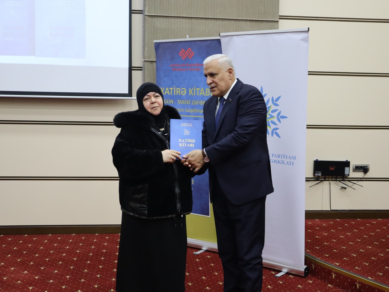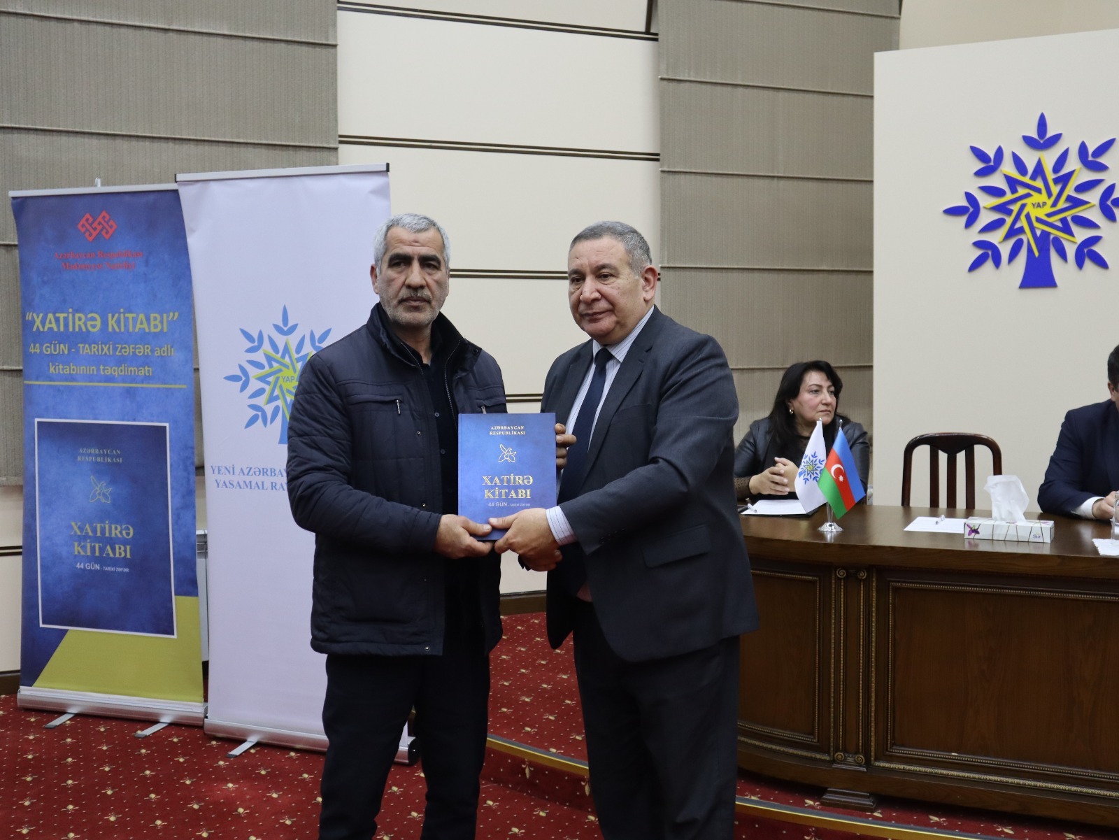 Çıxış edən Respublika “Xatirə Kitabı” Redaksiyasının baş redaktoru, “Mətbuat pr.529-cu məhəllə” (Respublika Xatirə Kitabı) ünvanı üzrə ərazi partiya təşkilatının sədri Nəzakət Məmmədova qeyd edib ki, Müzəffər Ali Baş Komandan cənab İlham Əliyevin rəhbərliyi ilə qazanılan 44 günlük Zəfər Azərbaycan dövlətinin gücünü dünyaya nümayiş etdirdi. Bu Qələbə milli iradənin və tarixi haqqın təntənəsi oldu. “44 gün – Tarixi zəfər” çoxcildlik nəşri həmin tarixi hadisələrin, igid qəhrəmanlarımızın, şəhidlərimizin yaddaşda yaşadılması məqsədi daşıyır. Bu cildlər vahid tarixi konsepsiya yaradır. Onlar Zəfərin siyasi və mənəvi mahiyyətini açır. Bildirilib ki, Respublika Xatirə Kitabı tarixi sənəd, tarixlə cəmiyyət arasındakı həqiqətləri, müharibə ağrılarını özündə geniş əks etdirən ensiklopedik salnamədir. Bu missiyanı öz üzərinə götürərək Xatirə Kitabı Redaksiyası İkinci Dünya müharibəsi, Əfqanıstan döyüşləri, 20 Yanvar faciəsi, Xocalı soyqırımı, Azərbaycanın ərazi bütövlüyü uğrunda gedən döyüşlərdə həlak olmuş, itkin düşmüş, əsir götürülmüş vətəndaşlarımız, Milli qəhrəmanlarımız, Azərbaycanın ərazi bütövlüyü uğrunda şücaət göstərmiş şəxslər haqqında da əhatəli materiallar toplayaraq ayrı-ayrı kitablar dərc edib.