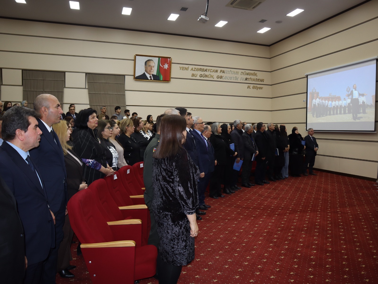 Mərasimdə Azərbaycan Respublikasının Dövlət Himni səsləndirilib, Ulu Öndər Heydər Əliyevin və Azərbaycan Respublikasının suverenliyi və ərazi bütövlüyü uğrunda canından keçən şəhidlərimizin əziz xatirəsi bir dəqiqəlik sükutla yad edilib.