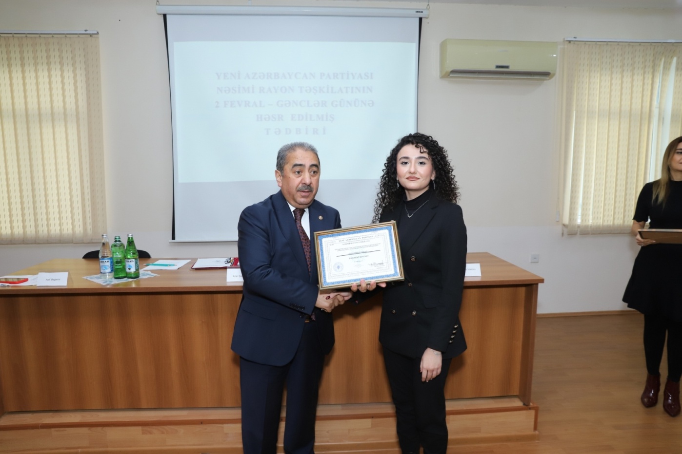 Sonda partiya sıralarına yeni qəbul olunan bir qrup gəncə partiya vəsiqələri təqdim olunub, partiyanın siyasi həyatında fəal iştirak edən gənc fəallara isə təşəkkürnamələr verilib.