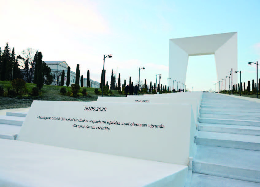 Parkın girişindən 44 metr hündürlüyündəki Zəfər tağına doğru irəlilədikcə üzərinə quraşdırılmış lövhələrdə Vətən müharibəsinin gündəlik gedişi və 2023-cü ildə keçirilmiş antiterror tədbirlərinin nəticələrini əks etdirən məlumatlar, azad olunmuş yaşayış məntəqələrinin adları yazılmış 44 pilləli pilləkənin yanından ötürsən. Hər pillənin yanında dayanıb Zəfər tariximizin qızıl hərflərlə yazılmış səhifələrini yenidən vərəqləmək isə xalqımızın tarixi ədalətin bərpası və ərazi bütövlüyümüzün təmin edilməsi uğrunda göstərdiyi döyüş əzmini, misilsiz qəhrəmanlığını xatırladır.