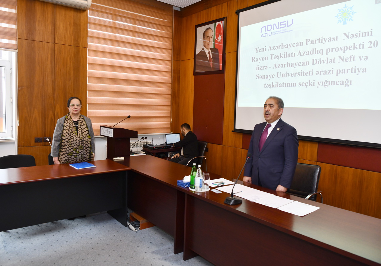 Fevralın 24-də YAP Nəsimi Rayon Təşkilatının Azadlıq prospekti 20 ünvanı üzrə – Azərbaycan Dövlət Neft və Sənaye Universiteti ərazi partiya təşkilatının hesabat-seçki yığıncağı keçirilib.
