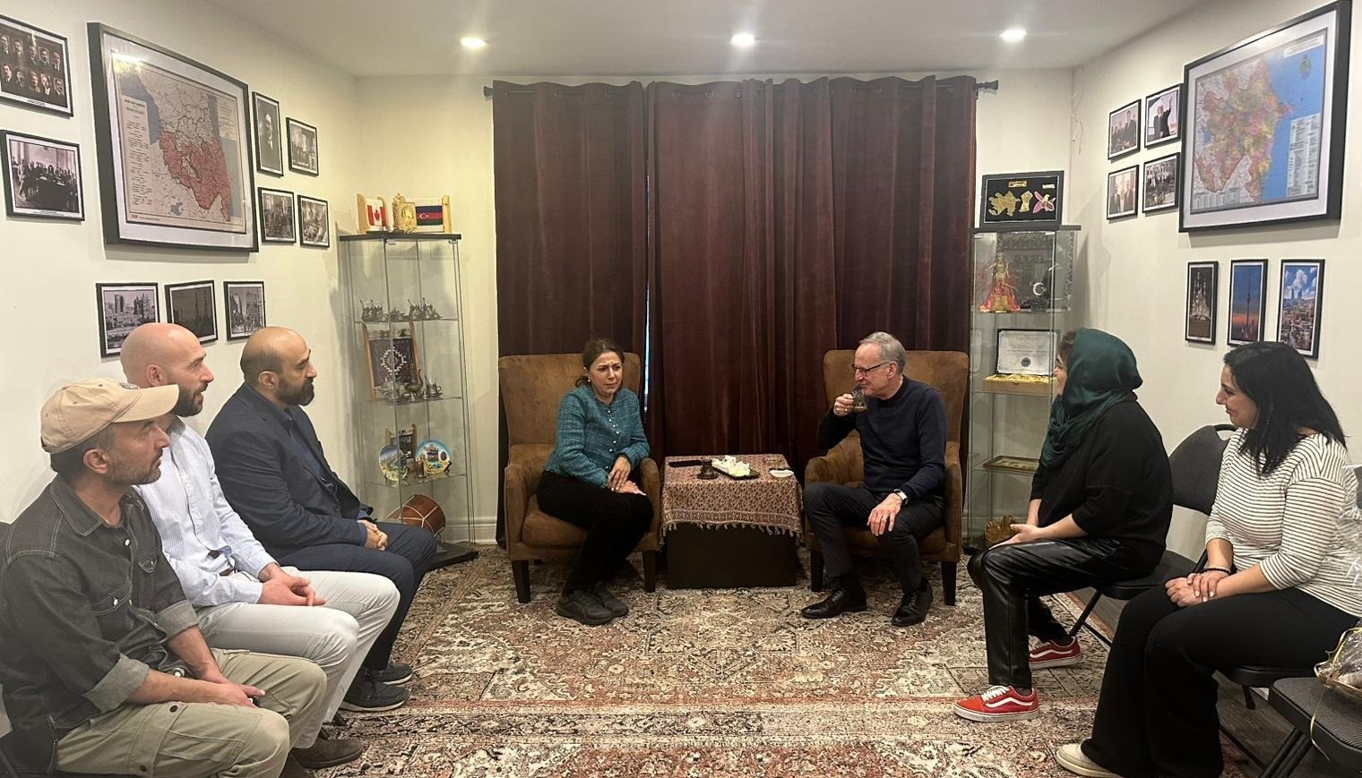Azərbaycan Evinin rəhbəri Lalin Həsənova qonağa Kanadadakı Azərbaycan icmasının fəaliyyəti barədə məlumat verib və soydaşlarımıza göstərdiyi diqqətə görə təşəkkür edib.