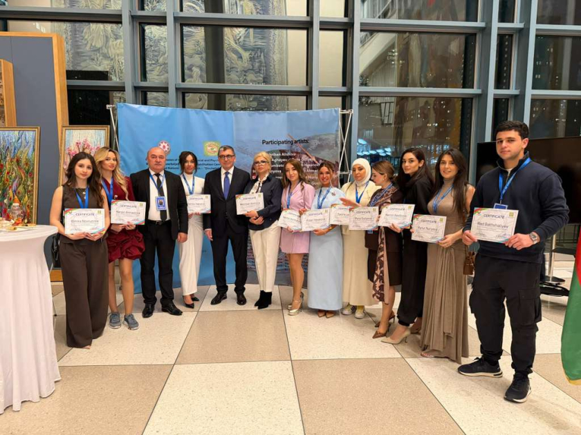 Azərbaycan Respublikasının Birləşmiş Millətlər Təşkilatı yanında Daimi Nümayəndəliyinin “Dirçəliş” Gənclərin Sosial və Psixoloji Reabilitasiya Mərkəzi ilə əməkdaşlıq çərçivəsində BMT-nin Nyu-York şəhərində yerləşən Baş Qərargahında “Mədəni diplomatiya üçün incəsənət, Azərbaycan-Şərq və Qərbin qovuşduğu məkan” adlı gənc azərbaycanlı rəssamların əsərlərindən ibarət sərgisi açılıb.
