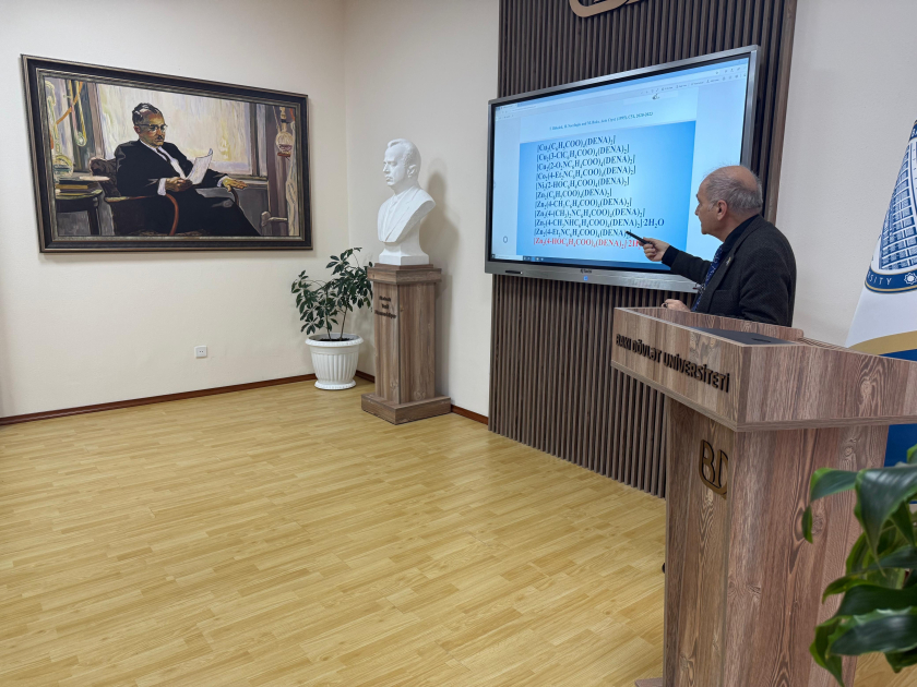 Bakı Dövlət Universitetinin (BDU) Kimya fakültəsində Türkiyənin Qars Qafqaz Universitetinin professoru Hacalı Nəcəfoğlu “Metal aril karbosilatların nikotin-amid iştirakında kompleks birləşmələrinin sintezi, quruluşu və tətbiq sahələri” mövzusunda ustad dərsi keçib.