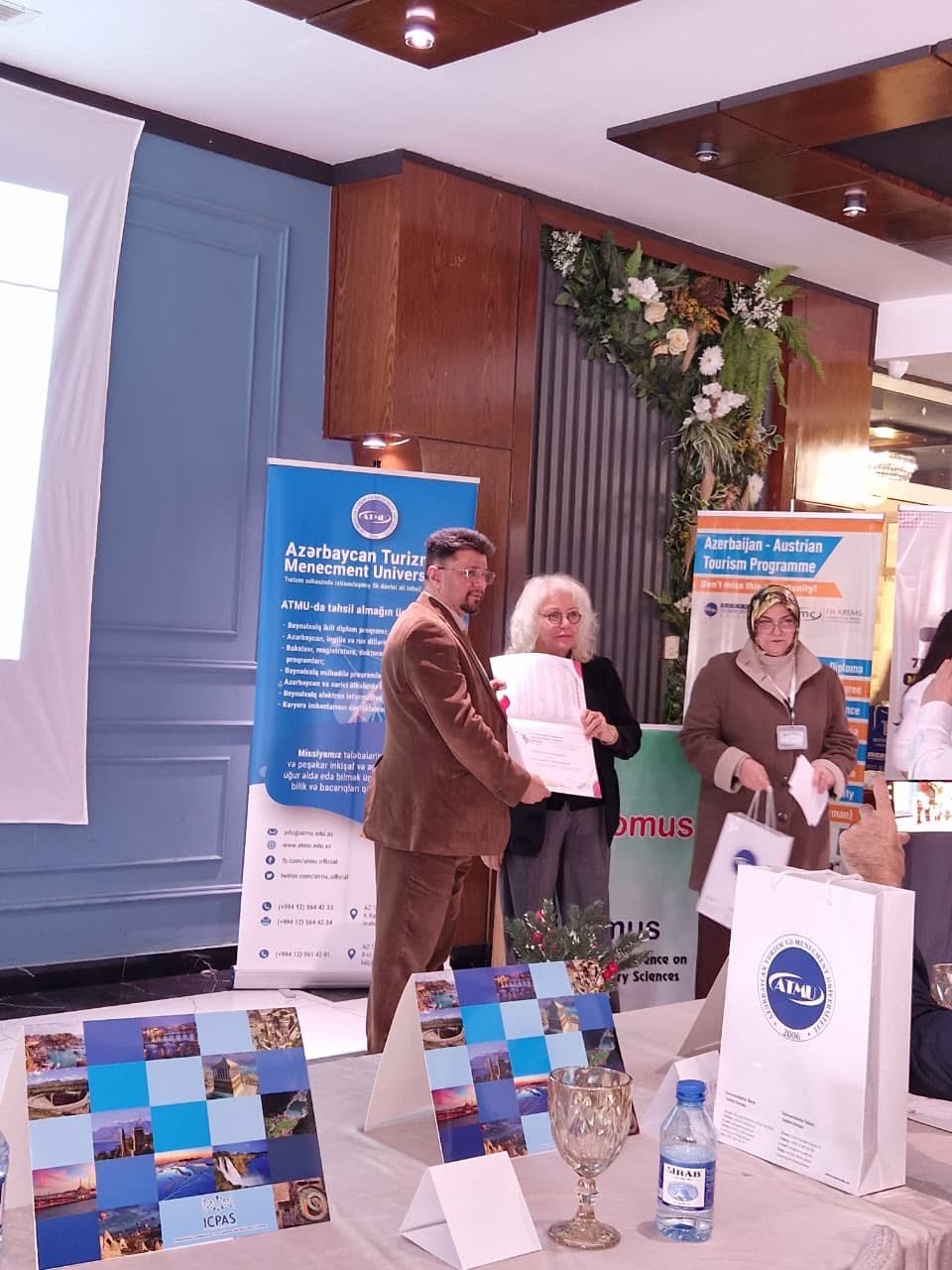 Sonda ATMU tərəfindən konfrans iştirakçılarına sertifikatlar və universitetin promo materialları təqdim olunub.