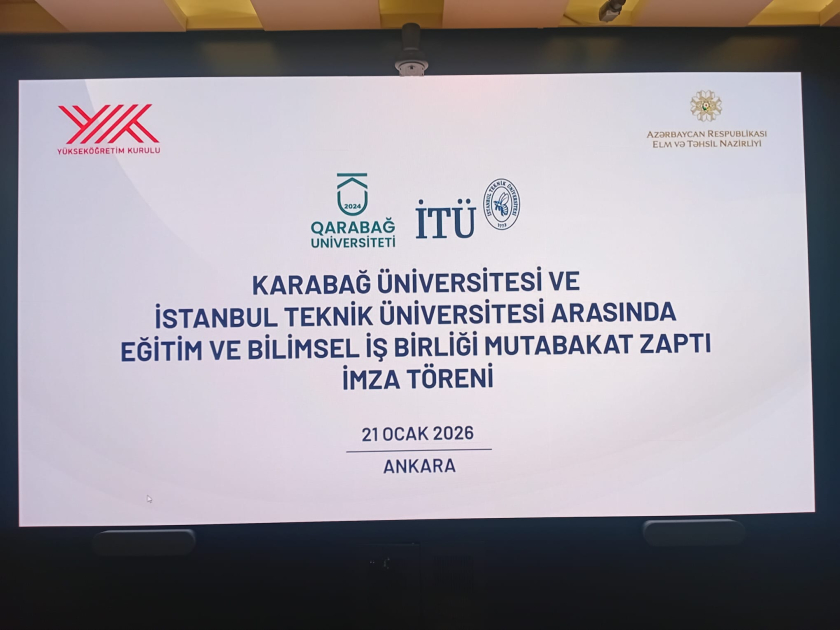 Yanvarın 21-də Ankarada Qarabağ Universiteti ilə İstanbul Texniki Universiteti (İTÜ) arasında elm və təhsil sahələrində əməkdaşlığa dair Anlaşma Memorandumunun imzalanması mərasimi keçirilib.