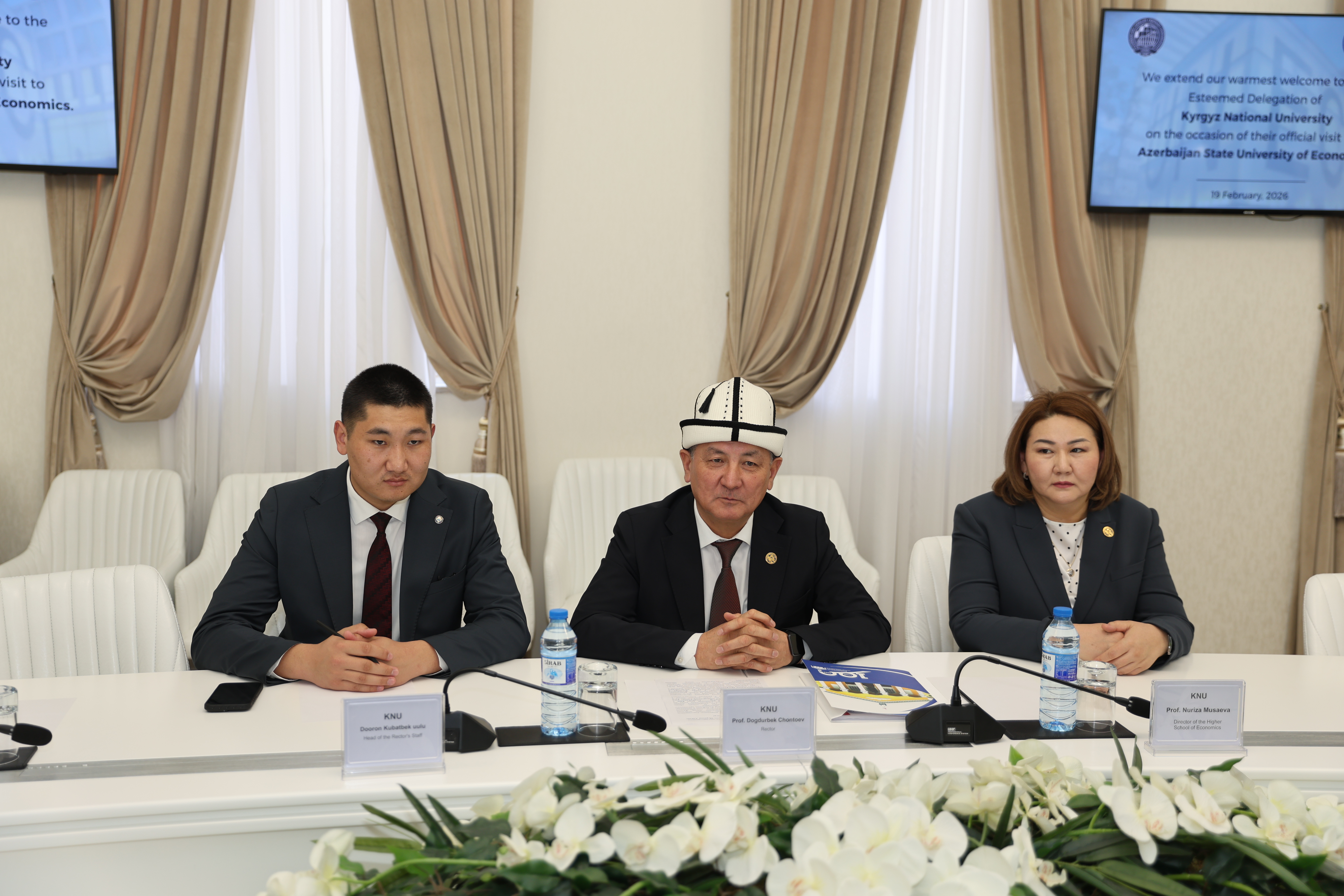 Qırğızıstanın Yusif Balasaqunlu adına Qırğız Milli Universitetinin rektoru Dogdurbek Çontoyevin rəhbərlik etdiyi nümayəndə heyəti UNEC-də səfərdə olub.