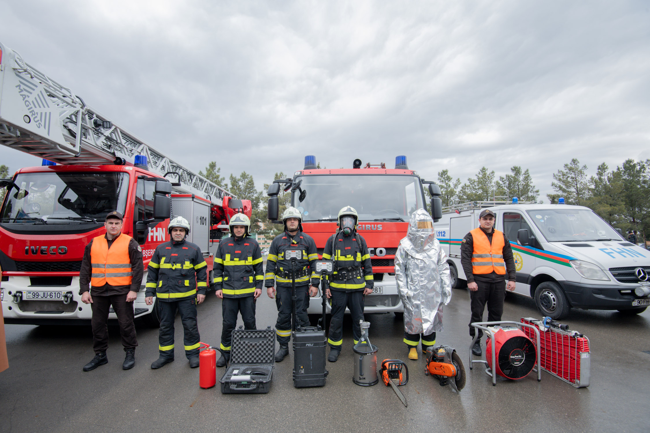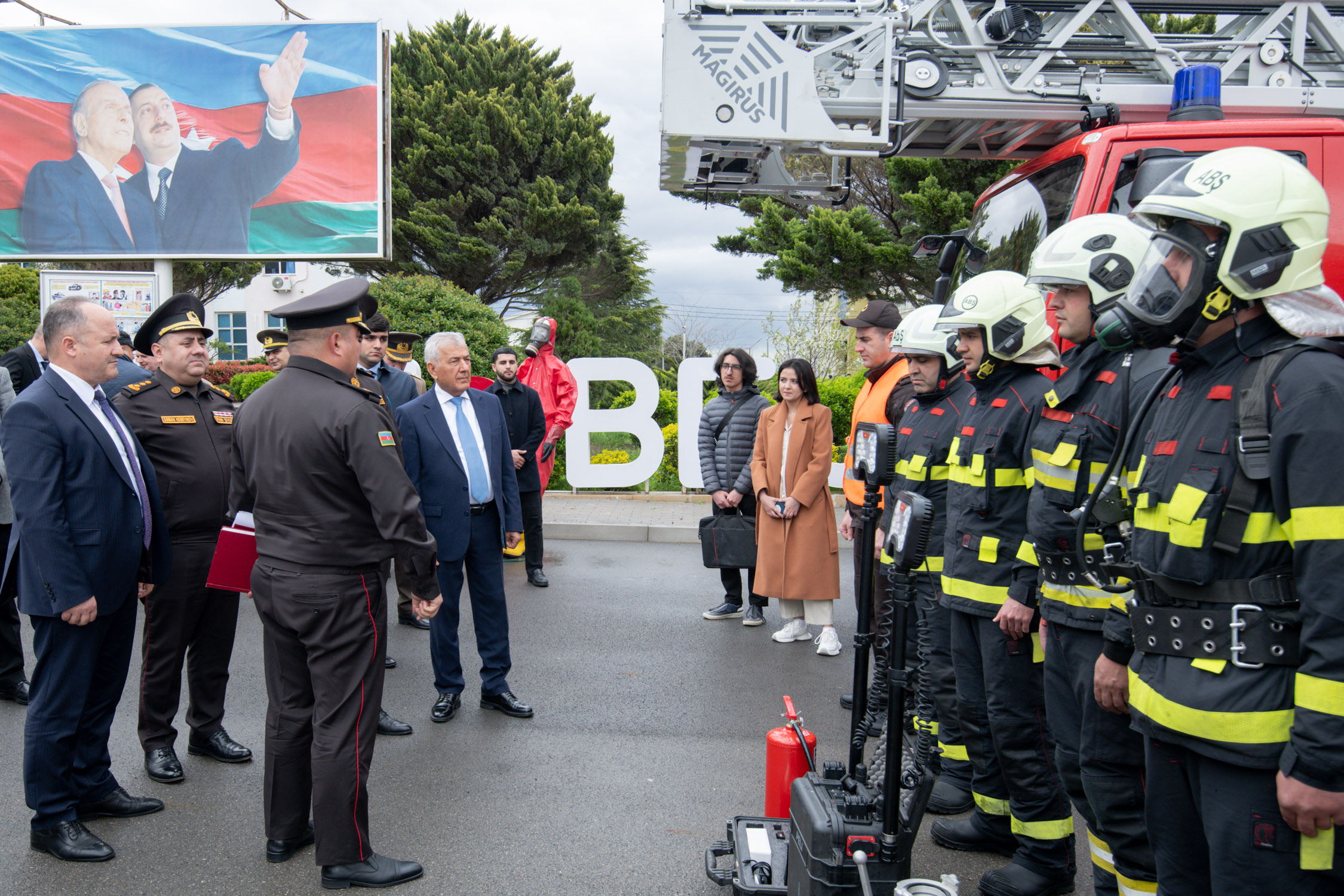 Sonda tədbir iştirakçıları universitet ərazisində fövqəladə hallar üçün nəzərdə tutulmuş xüsusi texnika və avadanlıqlarla tanış olub, FHN əməkdaşları tərəfindən onların təyinatı, istifadə qaydaları barədə məlumatlandırılıblar.