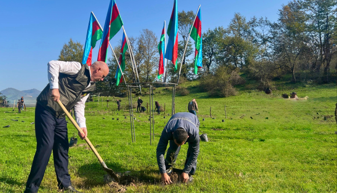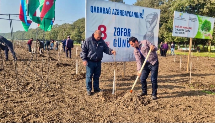 XQ xəbər verir ki, Vətən müharibəsi iştirakçılarının, şəhid ailələrinin üzvlərinin, dövlət qurumlarının və özəl təşkilatların əməkdaşlarının, eləcə də ictimaiyyət nümayəndələrinin iştirakı ilə Zəngilan, Qubadlı, Kəlbəcər, Ağdam, Lerik, Masallı, Tovuz, Gədəbəy, Goranboy, Sabirabad, Yevlax, Beyləqan, Şabran, Xaçmaz, İsmayıllı, Qəbələ, Qax, Zaqatala rayonlarının meşə fondu torpaqlarında yerli torpaq-iqlim şəraitinə uyğun 30 000-dən artıq müxtəlif cinsli ağac tingi əkilib.